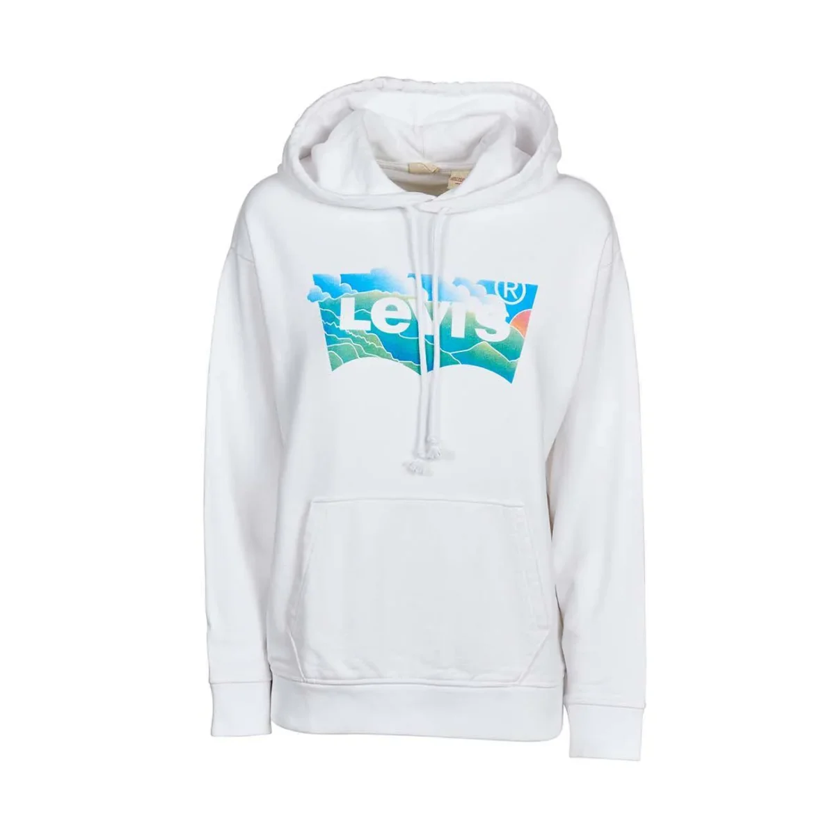 Felpa Cappuccio E Tascone Con Stampa Cloud Donna Bianco
