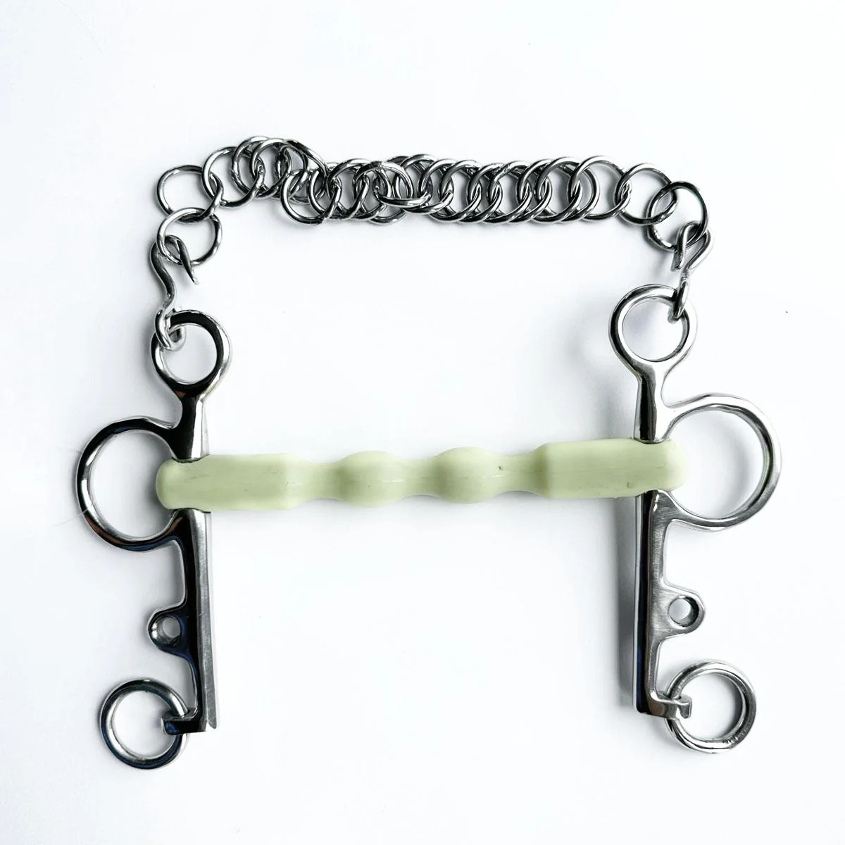 EQUINE HORSE Filetto ad anelli con canna intera in gomma bianca INOX imboccatura per equitazione (30MA-2)