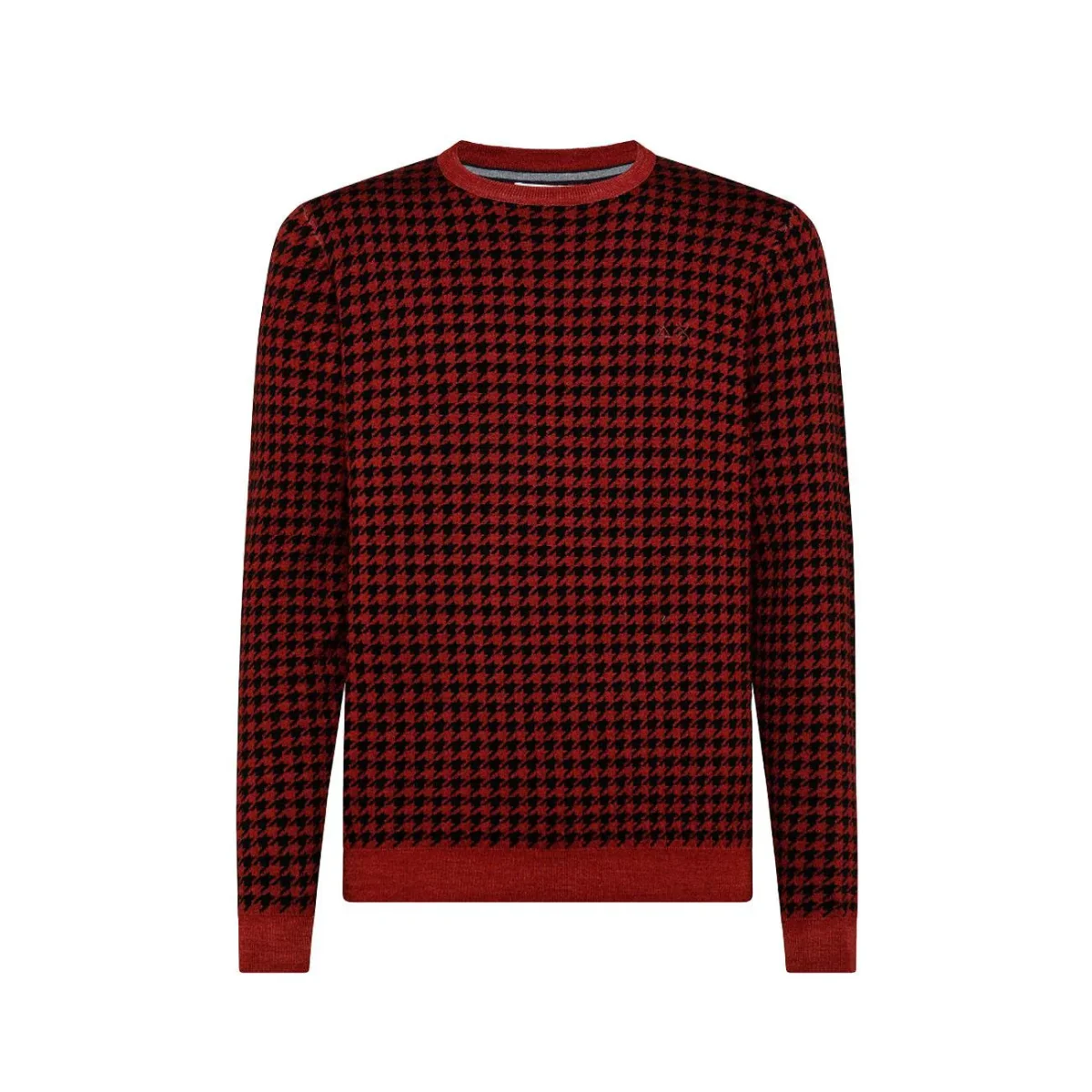 Pullover Round Vintage Jacquard Merinos Uomo Bordeaux