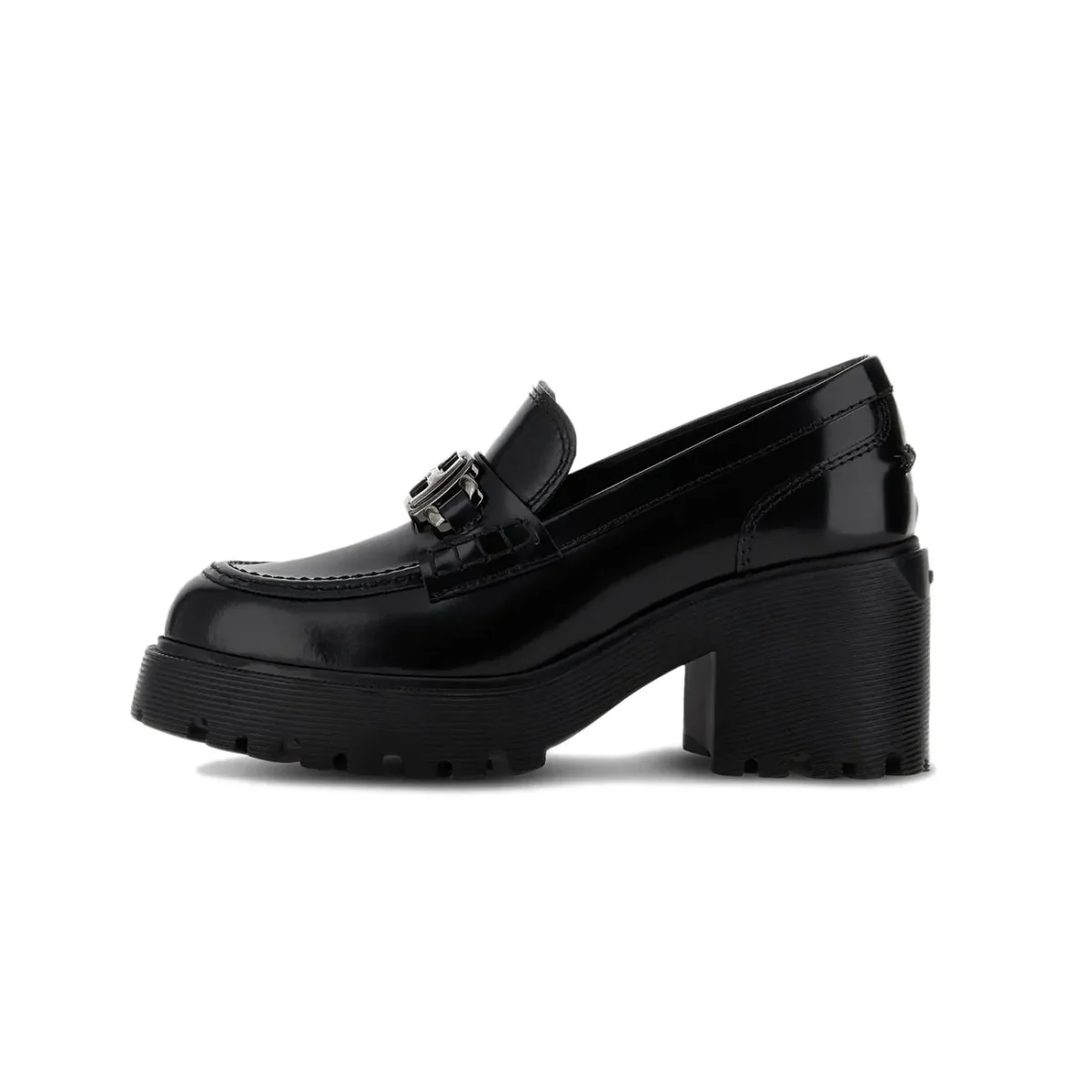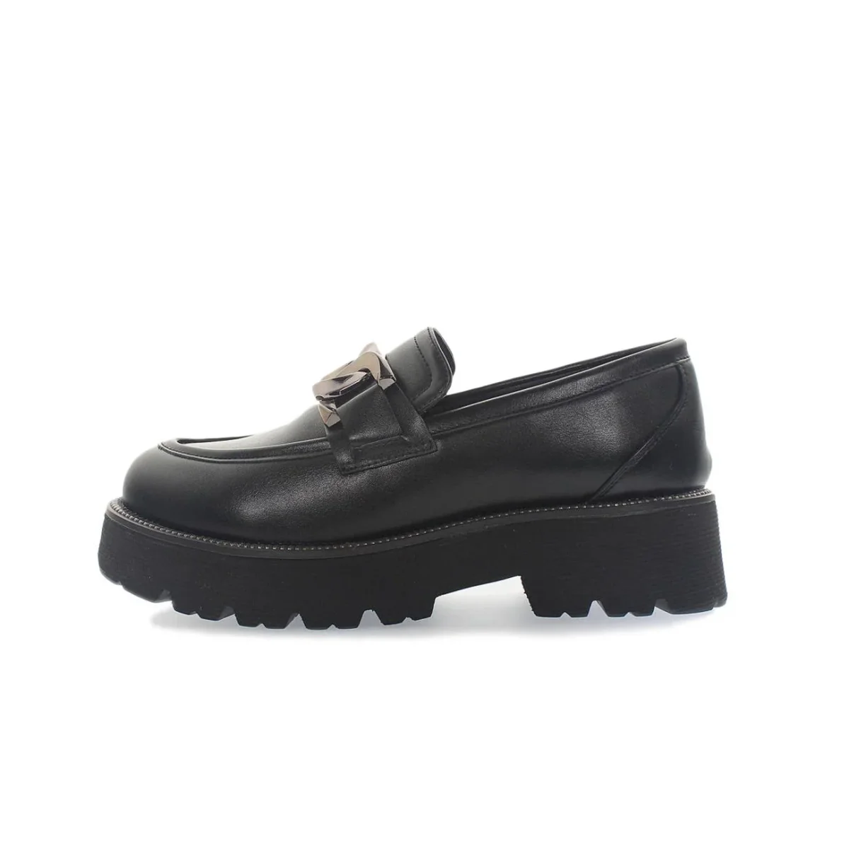 Mocassini Carrarmato Con Morsetto In Metallo Donna Nero
