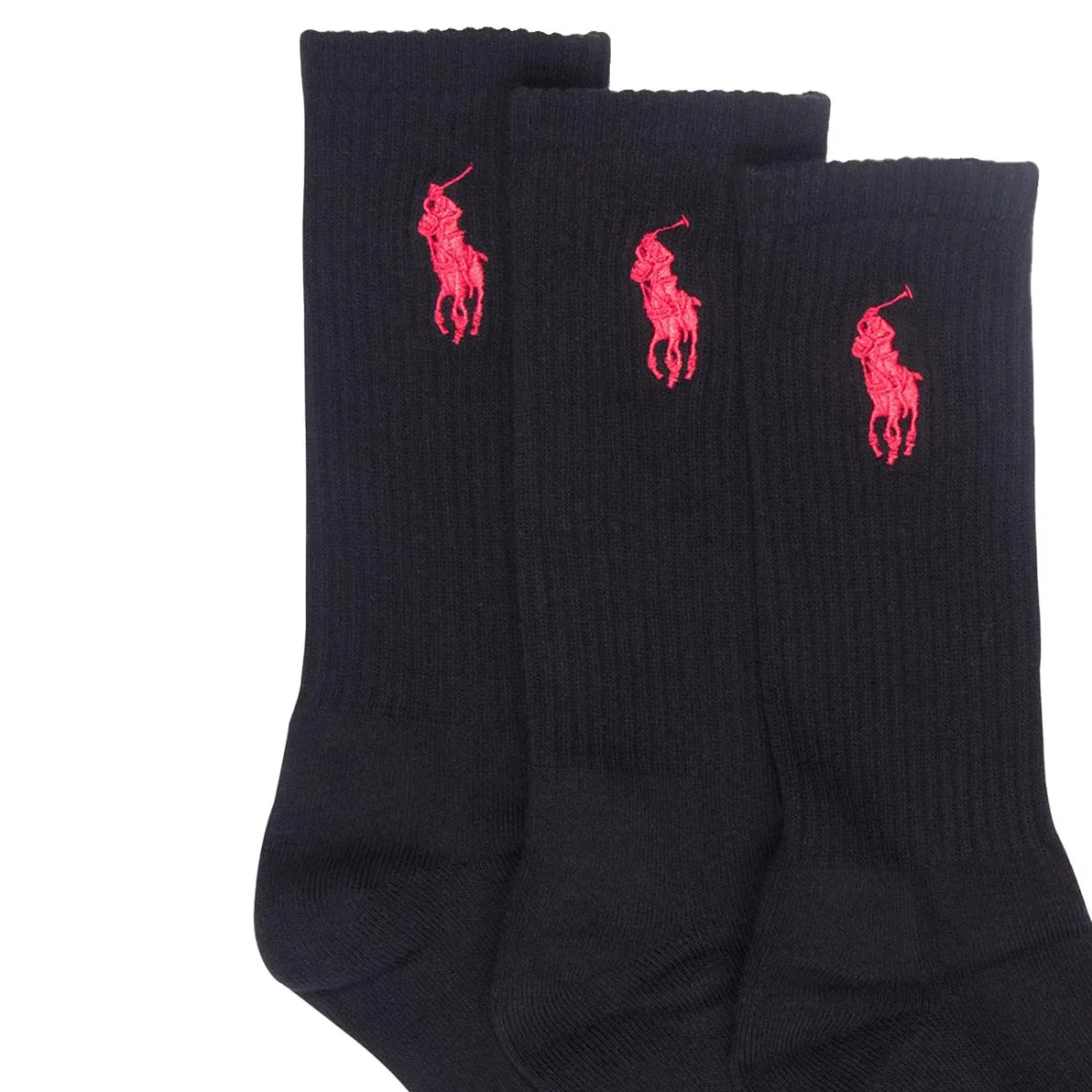 Calze UOMO – Modello: 449858064 – Colore: NERO Realizzati con un leggero tessuto elasticizzato per il massimo comfort, i calzini Big Pony Crew Socks neri di Polo Ralph Lauren sono una confezione da 3. Decorati con il caratteristico pony ricamato di Ralph Lauren, questi calzini offrono morbidezza, resistenza e stile eccezionali. Composizione: 78% Cotone, 19% Poliestere, 3% Elastan