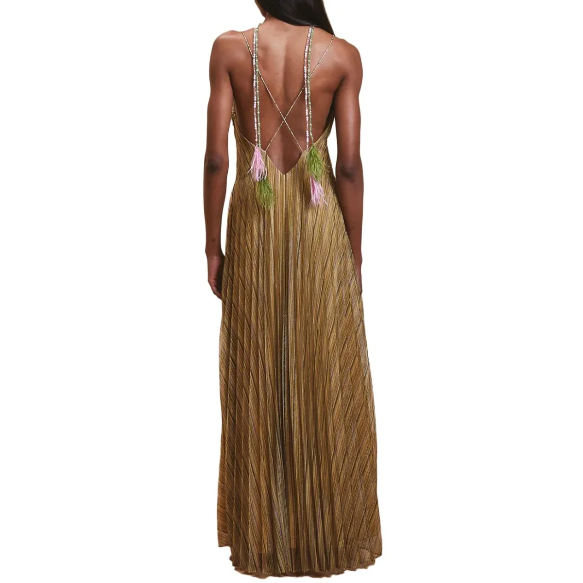 Abito DONNA – Modello: ANNET – Colore: LIGHT Abito lungo plissettato in tulle lurex con spalline e stampa a righe. Super elegante perfetto per un look luminoso! COMPOSIZIONE: 70% poliestere, 30% fibra metalizzata