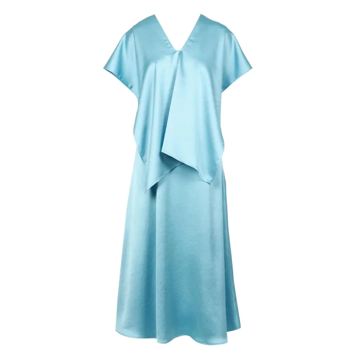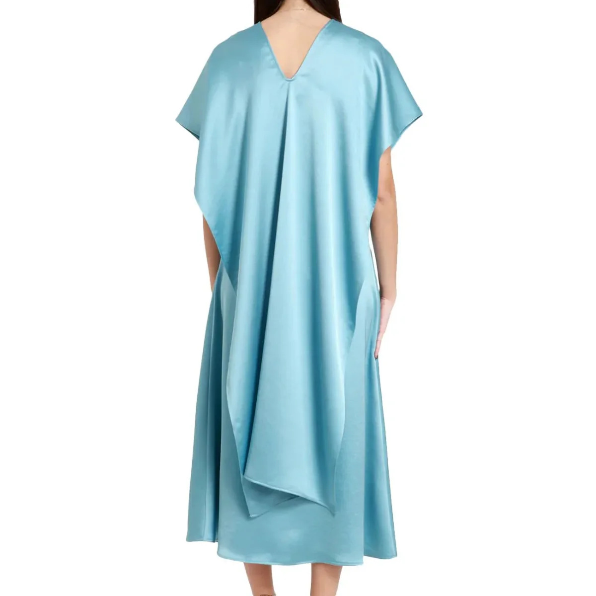 Abito DONNA – Modello: GAMBERO – Colore: ACQUA Abito midi smanicato. Il prezioso raso fluido, caratterizzato da una silhouette svasata rende il capo femminile ed elegante. Dettaglio scollo a V, taglio sottoseno e gonna morbida. Completa il capo la stola in tessuto abbinato, da indossare in diversi modi per rendere super versatili tutti i tuoi look! Chiusura con zip laterale. COMPOSIZIONE Abito tessuto 100% poliestere; fodera 100% poliestere. Coprispalla 100% poliestere.
