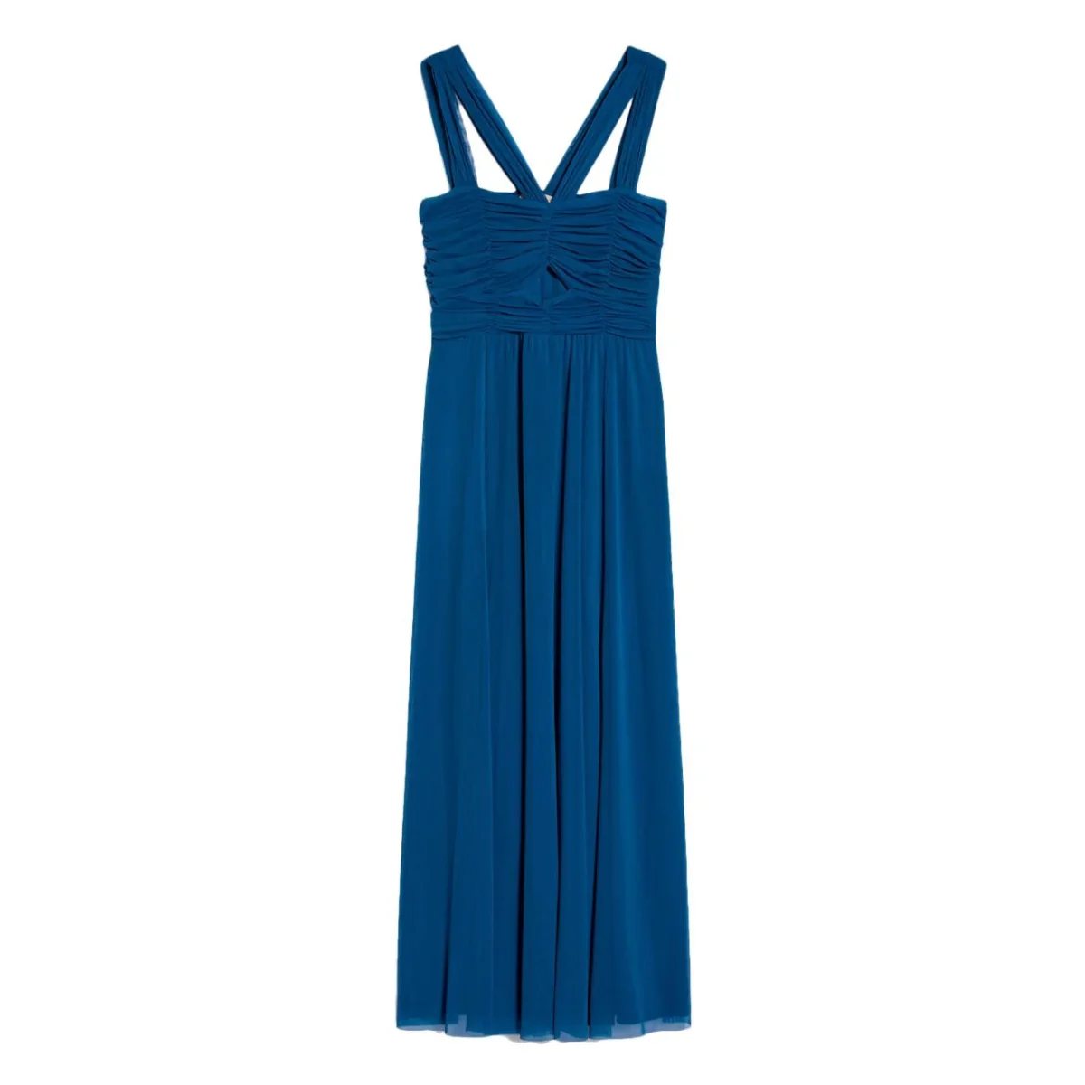 Abito DONNA – Modello: HOYO – Colore: BLU Abito in georgette bon chic con scollo a V, sfiora il busto con leggere arricciature, gonna a balze ondulate e sovrapposte. Tocco glam, la cintura in gros-grain con ricami gioiello. Zip invisibile, foderato. Perfetto per le tue occasioni estive! COMPOSIZIONE: 100% poliestere