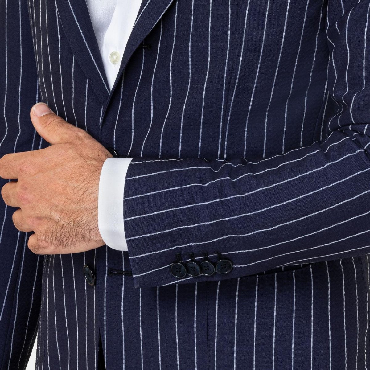 Recensisci per primo “Abito In Lana Gessato Uomo Blu”