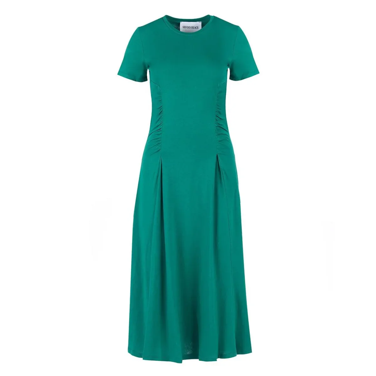 L’abito Koini incarna un’eleganza contemporanea e minimale, caratterizzato da una silhouette midi a maniche corte realizzata in morbido jersey verde. Il design è sapientemente movimentato da dettagli arricciati lungo i fianchi, che creano un delicato gioco di drappeggi e valorizzano la figura con naturalezza. Caratterizzato da un classico girocollo e una vestibilità fluida, questo capo offre il massimo comfort senza rinunciare a uno stile ricercato. La struttura essenziale e la purezza cromatica lo rendono un elemento versatile, perfetto da interpretare con accessori diversi per look day-to-night. Un’icona di semplicità moderna, ideale per chi cerca un’estetica pulita e sofisticata in ogni occasione.