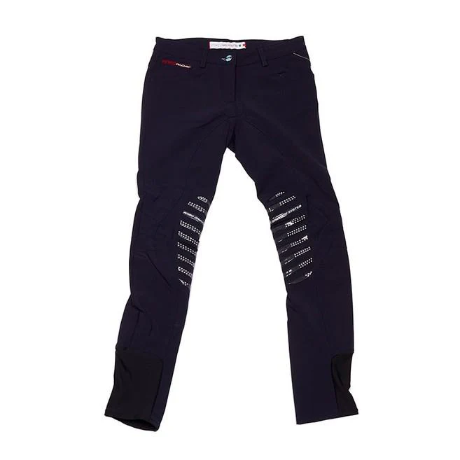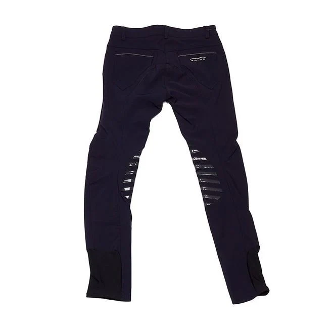 Pantalone da equitazione da bambino N03 Animo. Questo capo si distingue per prestazioni elevate in sella, con fibra innovativa ad asciugatura rapida e grip strategico per stabilità e comfort. Il colore blu valorizza il look sportivo mantenendo eleganza.
