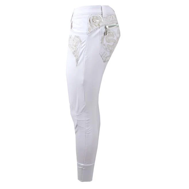 Pantalone da donna Nik’S/L Animo. Questo capo si distingue per prestazioni elevate in sella, con tessuto EVOlution elasticizzato e grip strategico per stabilità e comfort. Il tono 02 bianco valorizza il look sportivo mantenendo eleganza in competizione.