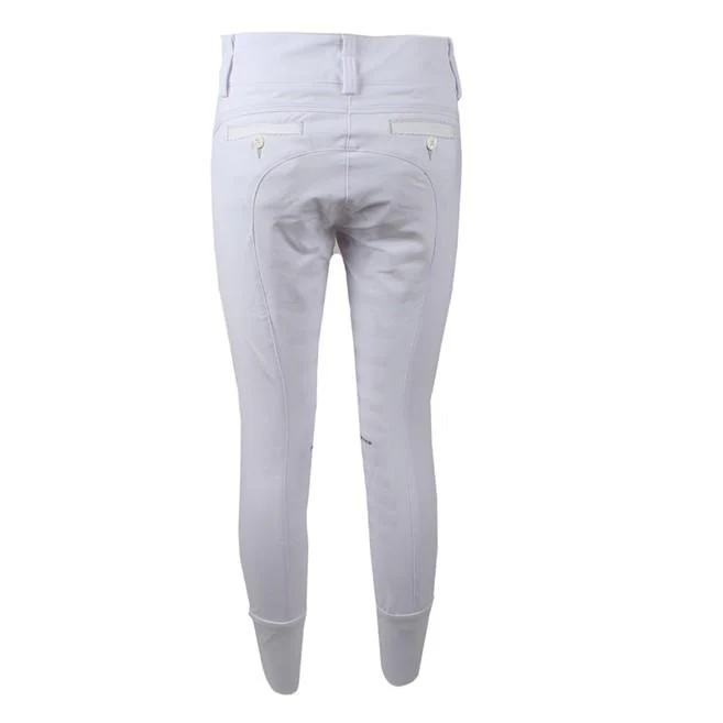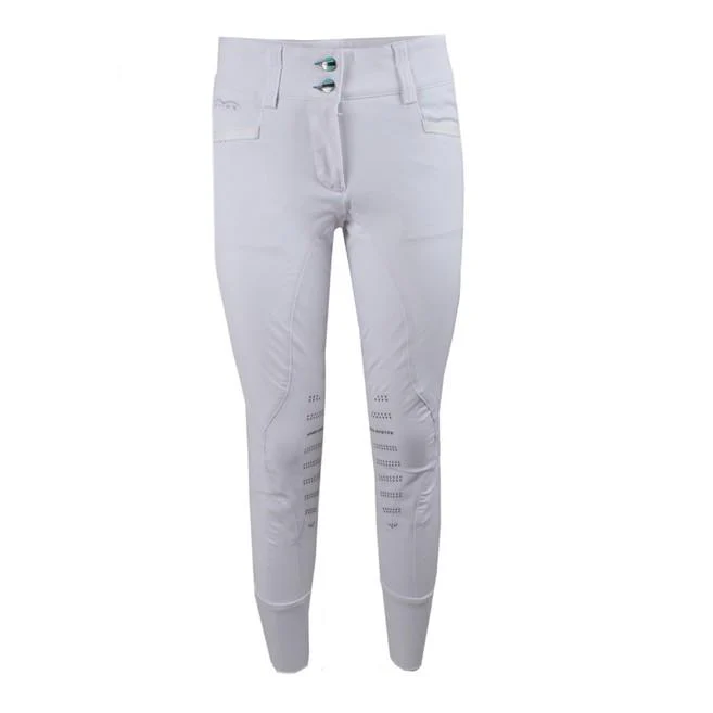 Pantalone da donna total grip Nisotta Animo. Perfetto per chi desidera prestazioni elevate in sella, con tessuto tecnico con filamenti d’argento e grip strategico per stabilità e comfort. Il colore bianco valorizza il look sportivo mantenendo eleganza in competizione.