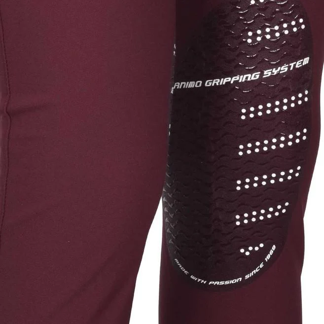 PANTALONE DA EQUITAZIONE DONNA GRIP NOA/18 ANIMO firmato Animo. Ideato per il cavaliere che cerca prestazioni elevate in sella, con tessuto tecnico con filamenti d’argento e grip strategico per stabilità e comfort. Il tono amaranto valorizza il look sportivo mantenendo eleganza in competizione.