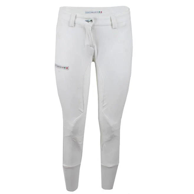Pantalone da donna con imbottitura Nostro Animo. Progettato in Italia per garantire prestazioni elevate in sella, con tessuto EVOlution elasticizzato e grip strategico per stabilità e comfort. Il tono bianco valorizza il look sportivo mantenendo eleganza in competizione.