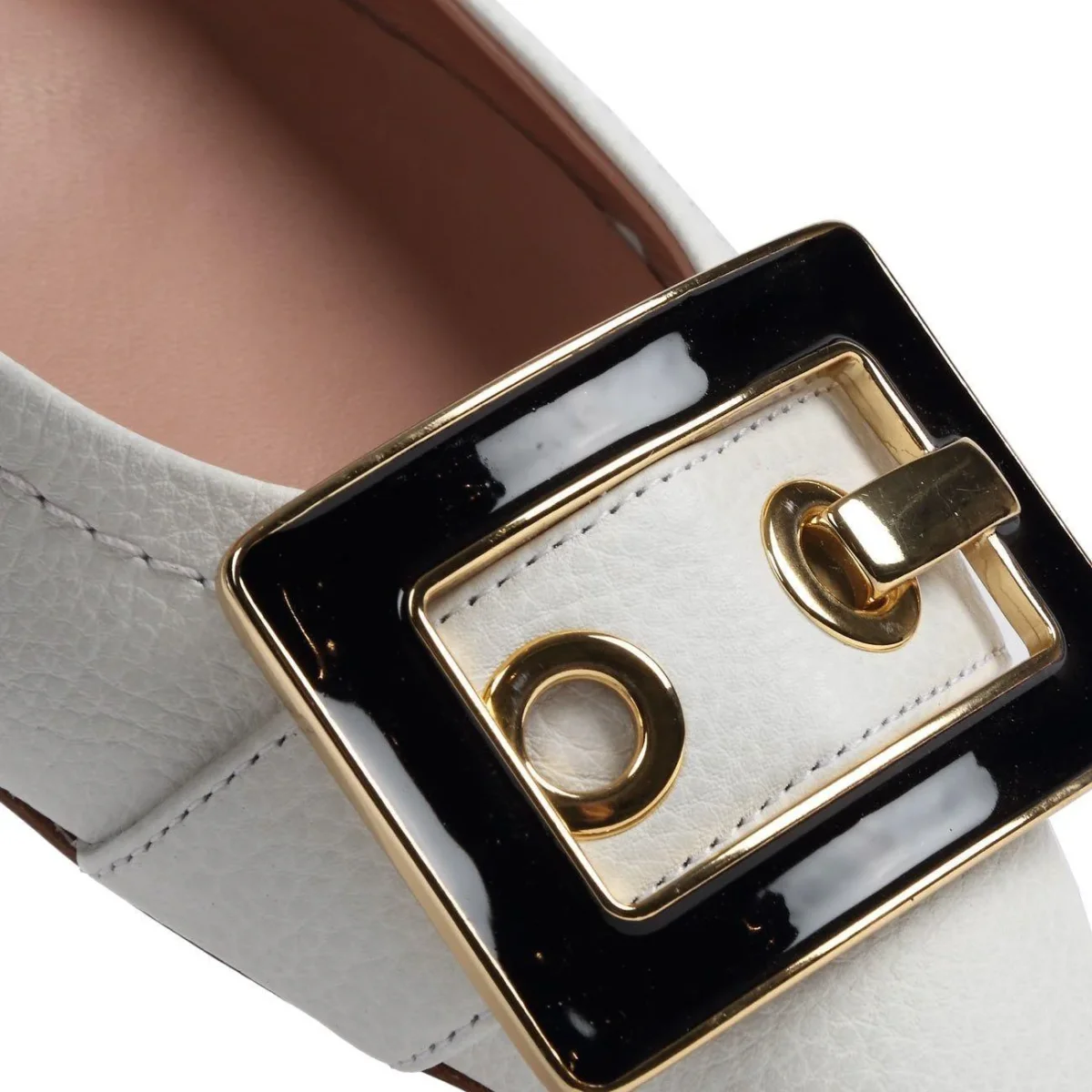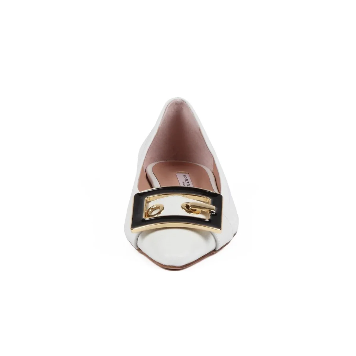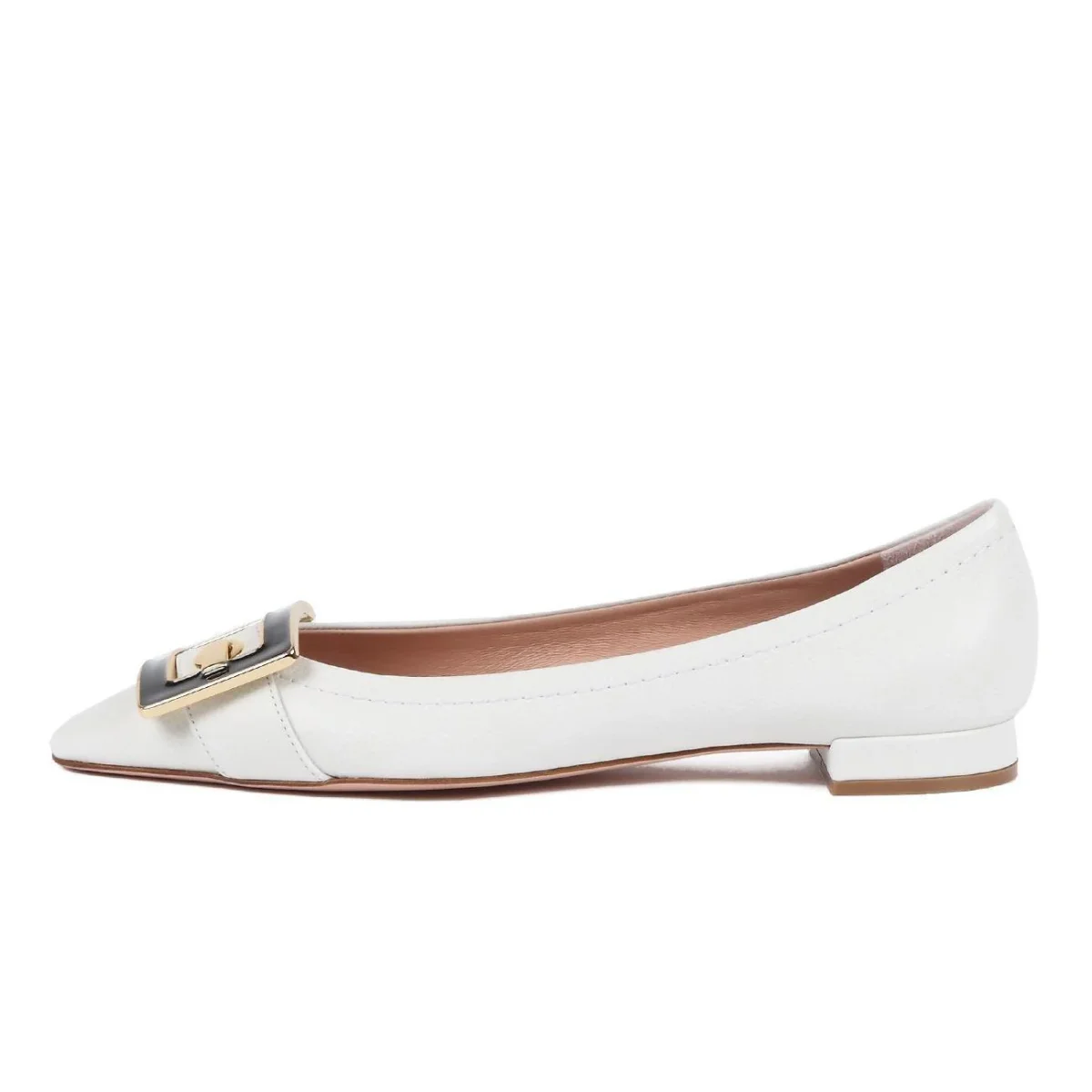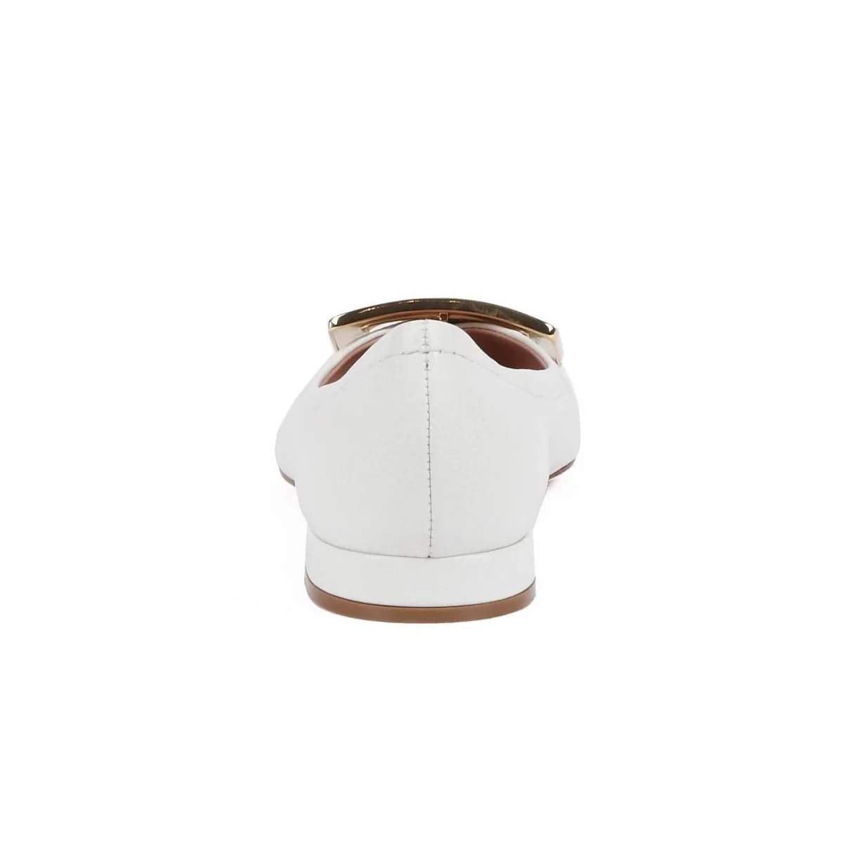 Ballerina DONNA – Modello: INULA – Colore: BIANCO Ballerina in pelle martellata bianca con tacco basso e punta con fibbia a contrasto. Altezza tacco: 1,5 cm Codice produttore: INULA