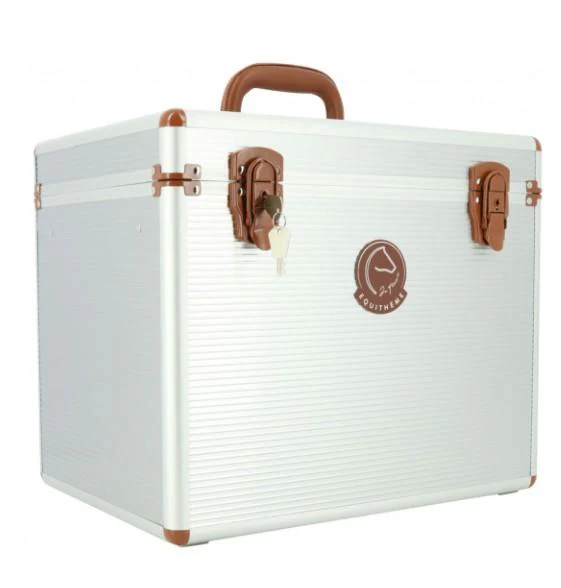 Bauletto in alluminio dotato di un vassoio regolabile e divisori per riporre tutto il necessario per la pulizia e la cura del cavallo. Può essere chiuso a chiave per una maggiore sicurezza.
