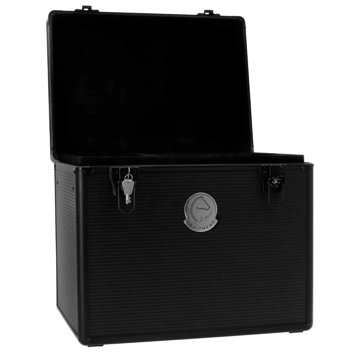 Bauletto in alluminio dotato di un vassoio regolabile e divisori per riporre tutto il necessario per la pulizia e la cura del cavallo. Può essere chiuso a chiave per una maggiore sicurezza.