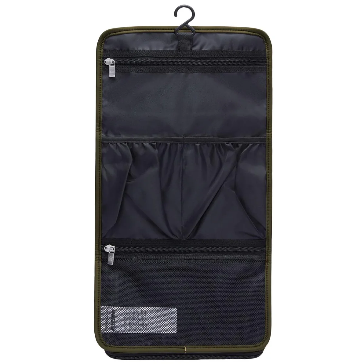 All’interno offre uno spazio ampio e ordinato con tasche multiple e gancio superiore per appenderlo.