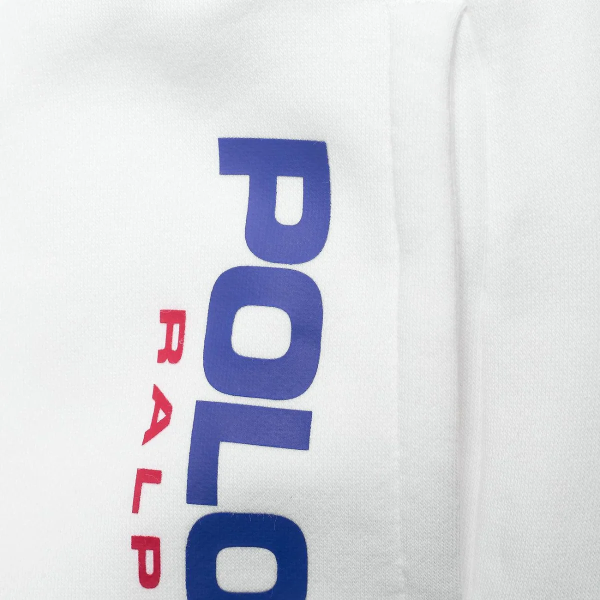 Bermuda BAMBINO – Modello: POLO SPORT – Colore: WHITE Bermuda bambino in felpa. Vita elasticata con coulisse, tasche laterali applicate. Tinta unita, stampa logo a contrasto gamba sx. COMPOSIZIONE: Tessuto 1: 80% cotone, 20% poliestere Tessuto 2: 98% cotone, 2% elastan Codice brand: 323836668