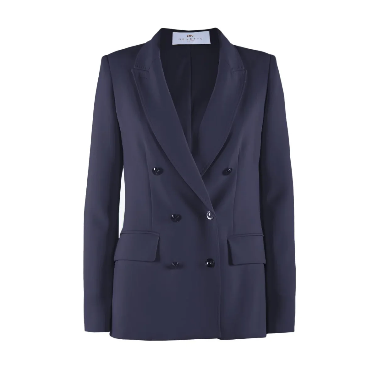 Blazer DONNA – Modello: BAILA – Colore: BLU NAVY Blazer doppiopetto caratterizzato da con chiusura con bottoni centrali e tasche laterali. COMPOSIZIONE: 92% Poliestere, 8% Elastan