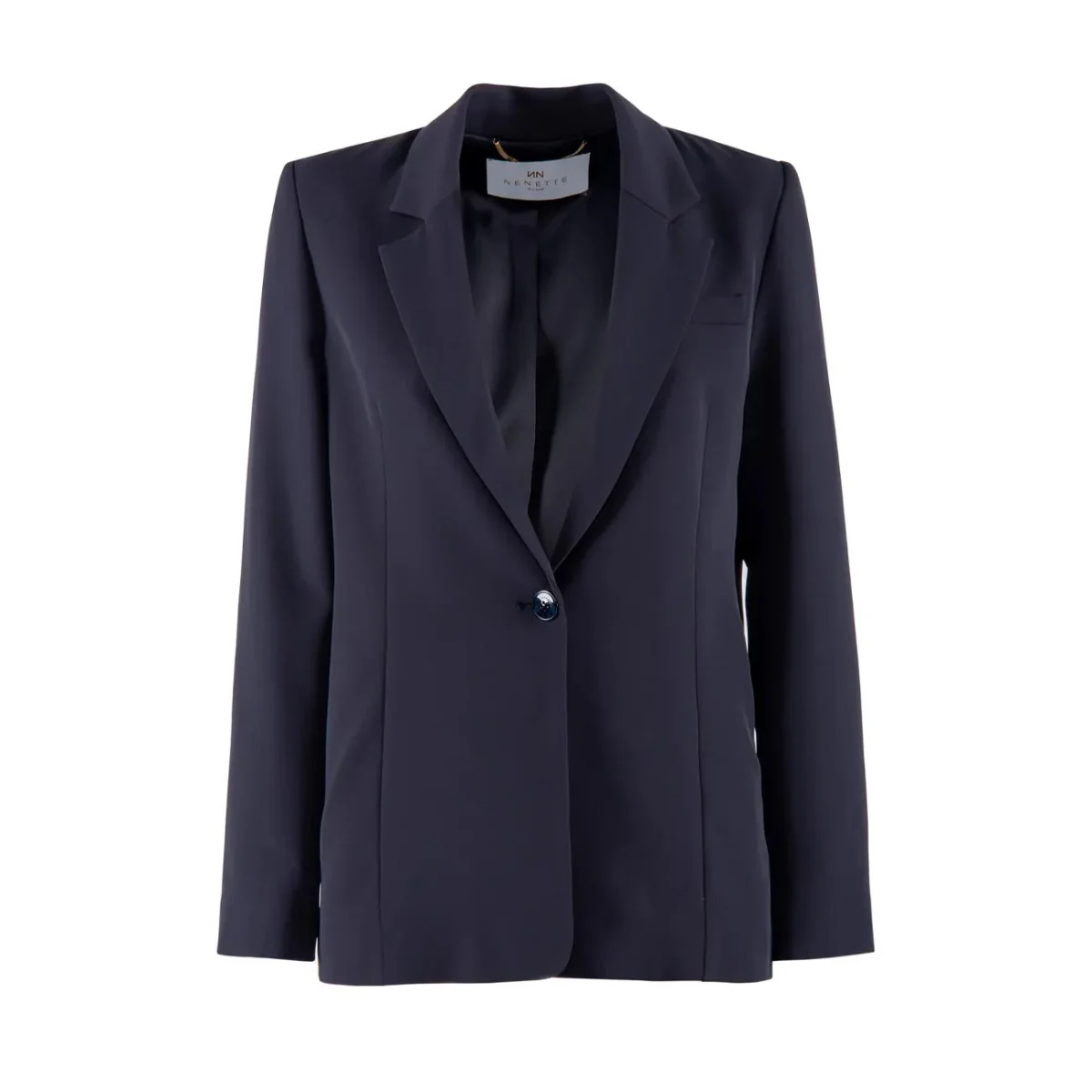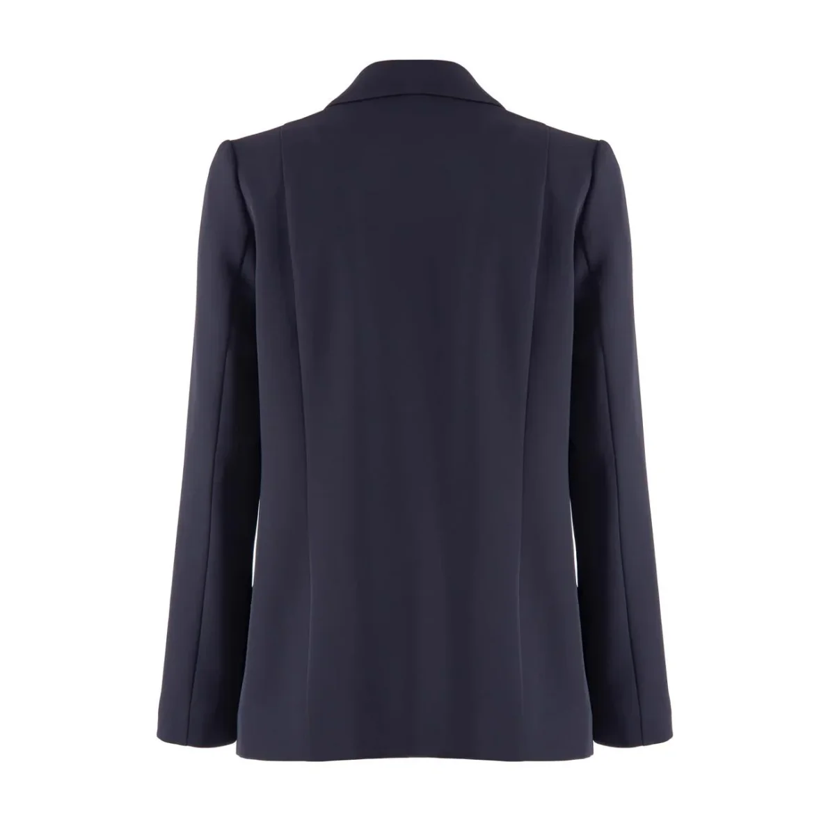 Blazer DONNA – Modello: BOEMIA – Colore: BLU NAVY Blazer con collo a rever caratterizzato da chiusura con bottone centrale e taschino su lato cuore. COMPOSIZIONE: 68% Acetato, 32% Poliestere