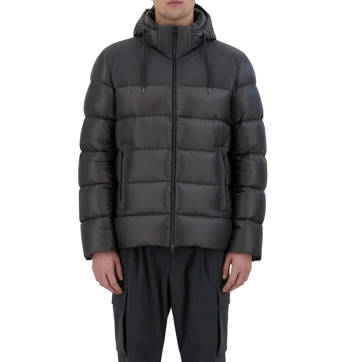 Bomber UOMO – Modello: PI001178U12020Z – Colore: GRIGIO SCURO Bomber in nylon ultralight imbottito in piuma pregiata 90/10 inserita ad iniezione. Il carré e il collo alto sono rifiniti in velluto a coste spazzolato dalla texture piacevole al tatto e resistente all’acqua. Chiusura con zip a doppio cursore. Performance Polartech trattamento idrorepellente. COMPOSIZIONE: 100% Poliammide