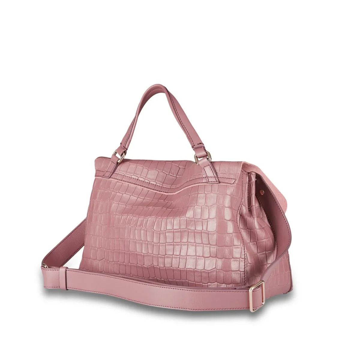 Borsa DONNA – Modello: POSTINA S CAYMAN – Colore: BROWN MALVA Postina, icona della Maison, caratterizzata dalla doppia chiusura e dalla sua grande versatilità può essere indossata a mano oppure a spalla. La borsa è realizzata interamente in pelle di vitello, lavorata con una particolare trama “cayman” per donare un effetto squamato. Postina è un accessorio resistente e pratico, pensato per chi desidera uno stile classico ed elegante. COMPOSIZIONE: 100% Pelle di Vitello DIMENSIONI: 29 x 20 x 15 cm