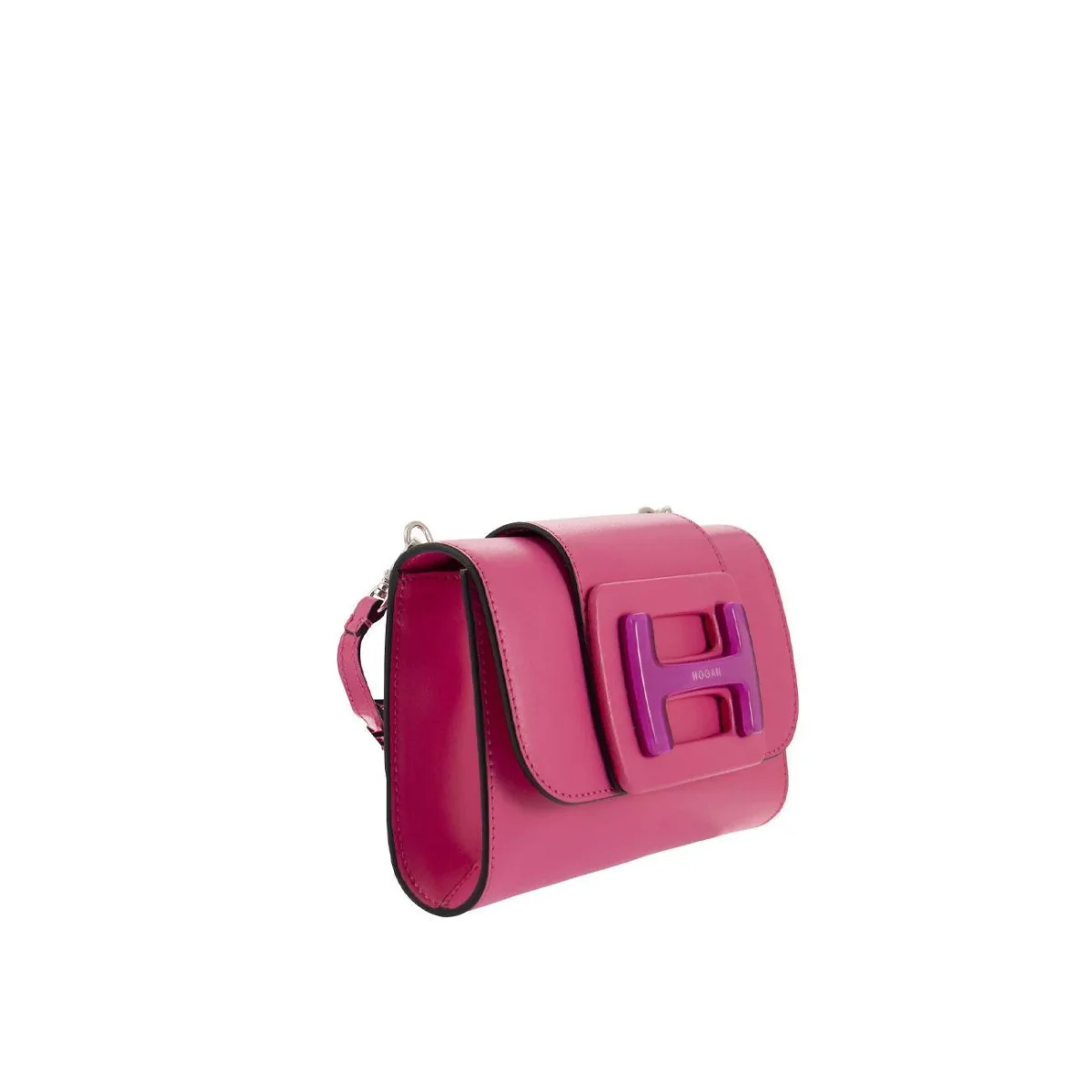 Borsa DONNA – Modello: BORSA TRACOLLINA PLEXI – Colore: FUCHSIA PURPLE Borsa a tracolla realizzata in pelle dal tocco cool e femminile con fibbia H con logo Hogan, chiusura con patta e bottone magnetico, sono presenti due scomparti ed una taschina interna. DIMENSIONI: 23,5 x 15 x 10,5 cm