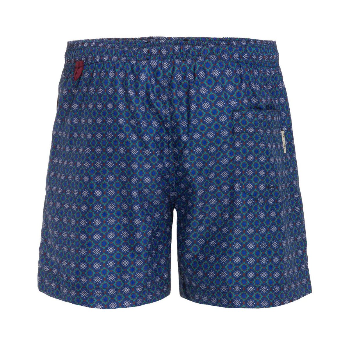 Boxer UOMO – Modello: BOXER MARE FANTASIA – Colore: BLU BORDEAUX Boxer mare con chiusura con coulisse ed elastico in vita. Presenta due tasche laterali e una sul retro. La stampa dona al capo un tocco di freschezza e originalità ! COMPOSIZIONE 100% poliestere Codice produttore: SMS22M325E