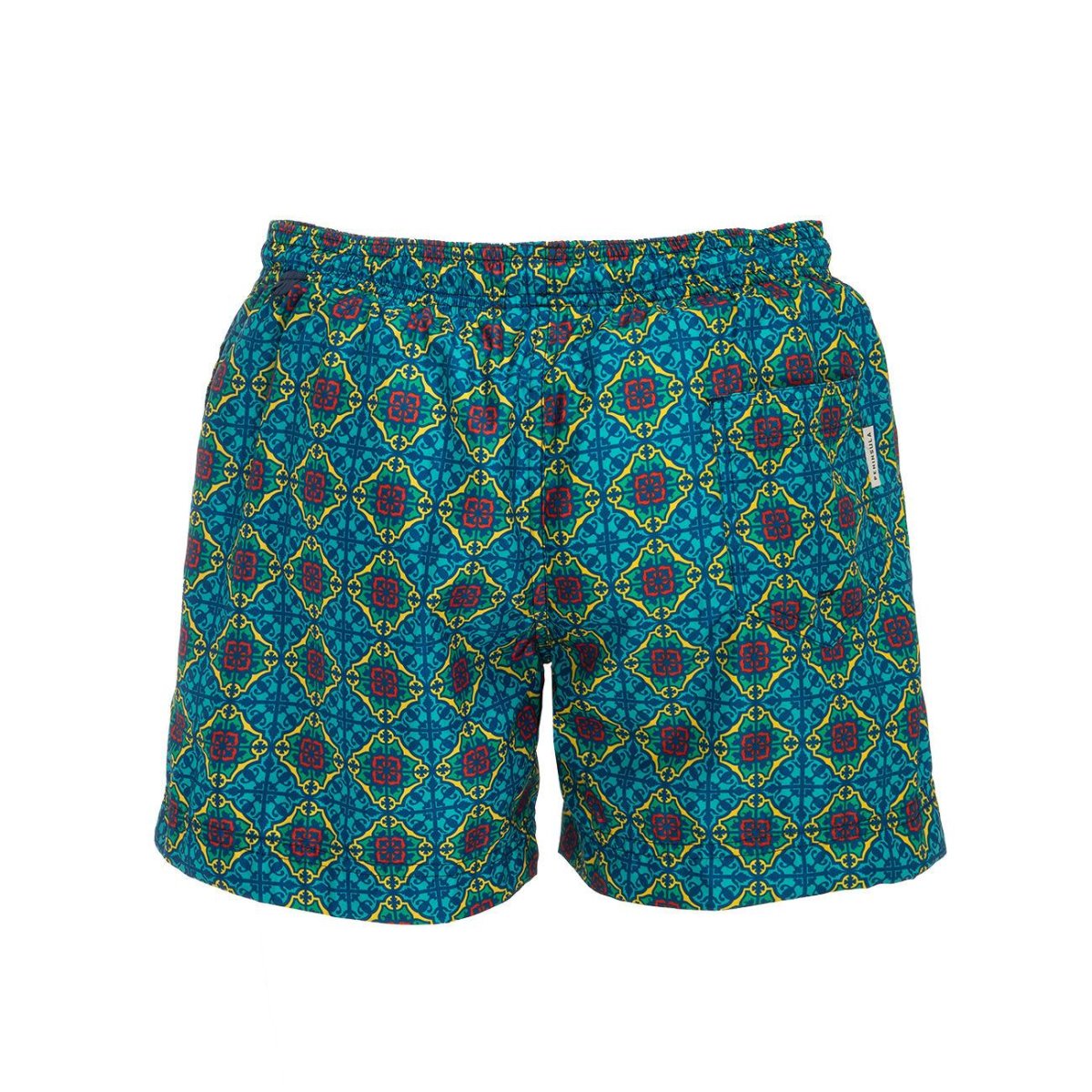 Boxer mare UOMO – Modello: BOXER MARE PANAREA CON MICRO STAMPA – Colore: TURCHESE MULTI Boxer mare con pattern dallo stile Mediterraneo. Due tasche laterali con interno a contrasto e fodera in rete soft touch. Cura minuziosa dei dettagli e un ‘eleganza senza tempo rendono questo prodotto unico nel suo genere. Dettaglio microstampa, chiusura con coulisse, tasche laterali e tasca sul retro COMPOSIZIONE 100% Poliestere Riciclato Codice produttore: SMS22M182E