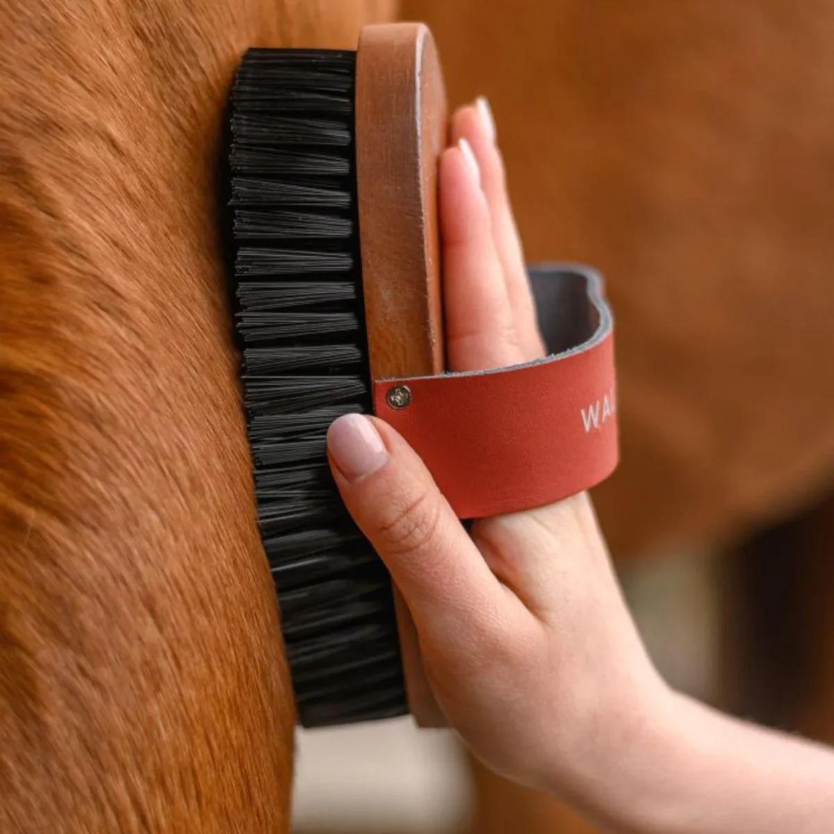 Brusca con dorso in legno naturale, passante in pelle e setole di alta qualità .
