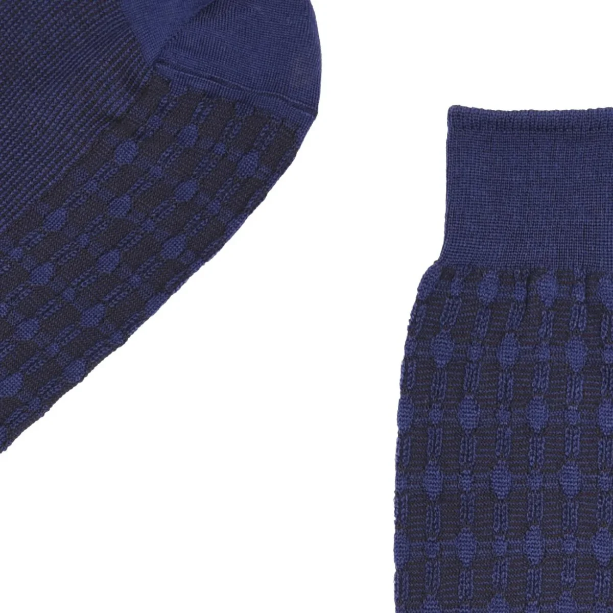 Calze UOMO – Modello: CALZE LUNGHE JACQUARD BACCHETTE IN LANA – Colore: INDACO Calze lunghe realizzate in misto lana decorate da motivo fantasia all over. Morbide e comode perfette per tenerti al caldo durante l’inverno! COMPOSIZIONE: 87% Lana, 11% Poliammide, 2% Elastan