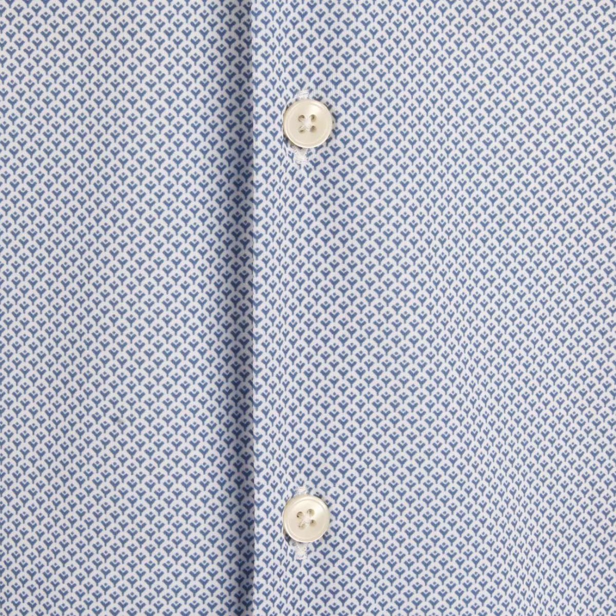 Camicia UOMO – Modello: JERSEY – Colore: BIANCO Camicia firmata guglielminotti realizzata con una fantasia in bianco e blu. Questa camicia dal taglio dritto presenta i classici polsini abbottonati, un colletto alla francese, degli spacchetti laterali e una chiusura centrale con fila di bottoni a vista. Codice produttore: QKPCJE