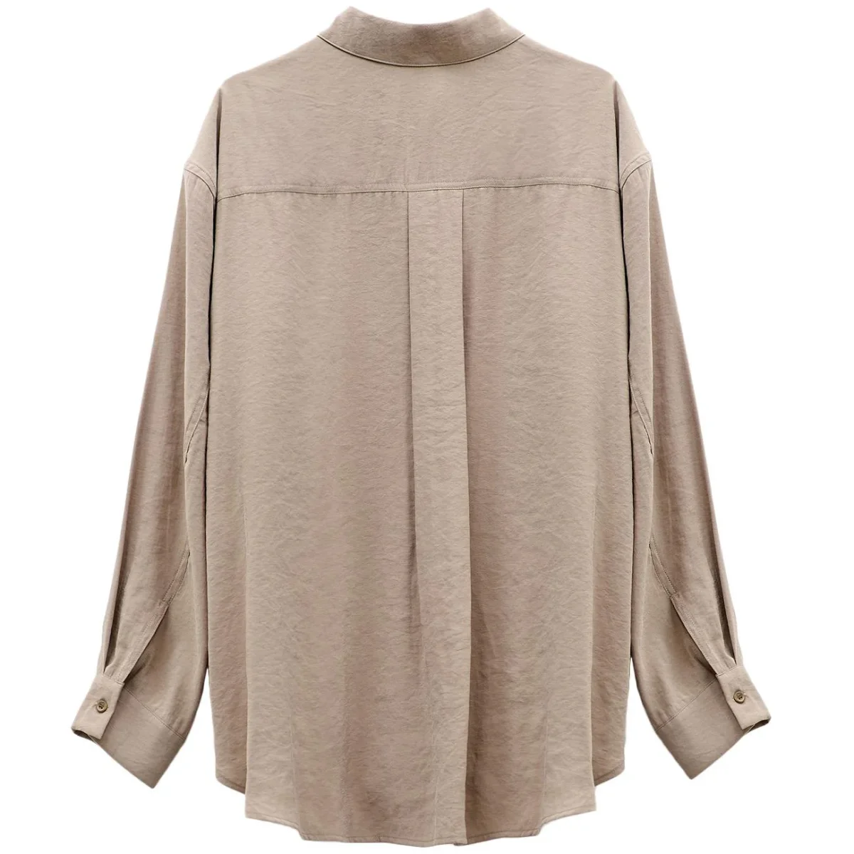 La camicia di Eleh esprime un’eleganza fluida grazie al suo tessuto leggero che cattura la luce con una brillantezza sottile.