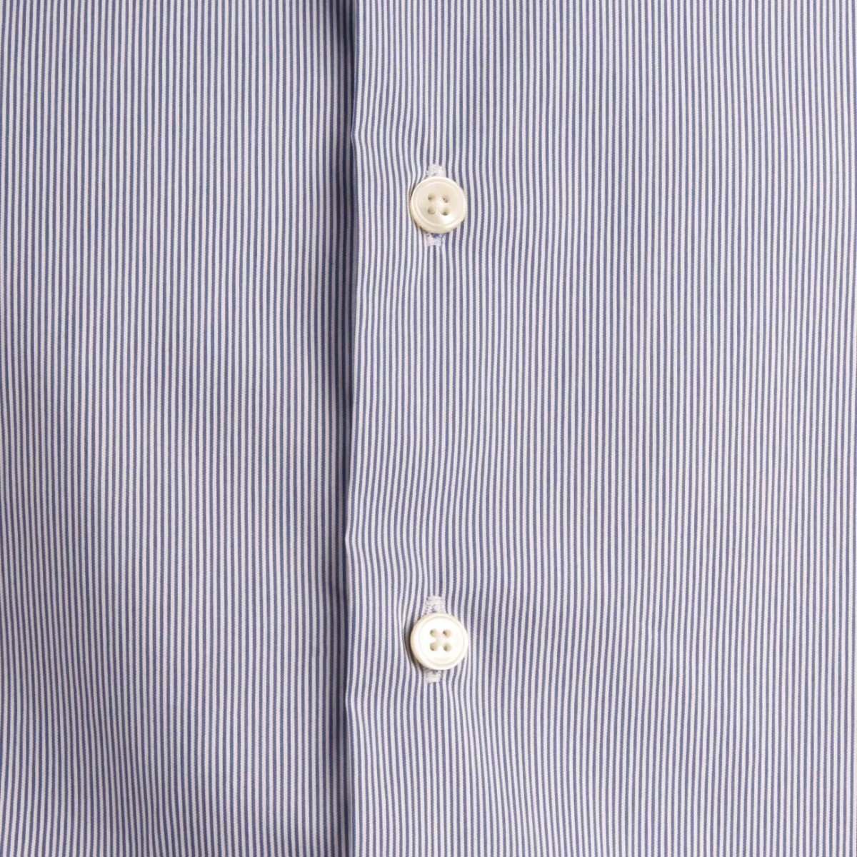 Camicia UOMO – Modello: RIGATA COLLO FRANCESE – Colore: BLU Camicia firmata guglielminotti realizzata a righe verticali. Questa camicia dal taglio dritto presenta i classici polsini abbottonati, un colletto alla francese, degli spacchetti laterali e una chiusura centrale con fila di bottoni a vista. Codice produttore: UB5FUR