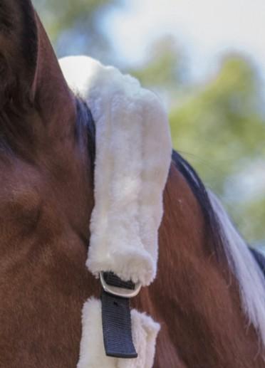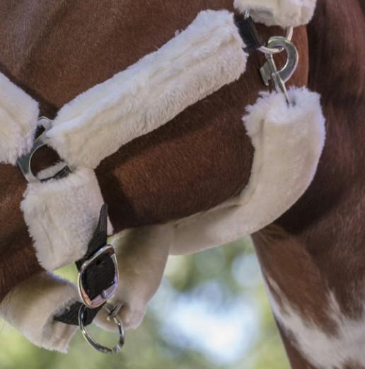 Capezza Norton con agnellino sintetico, pensata per il massimo comfort del cavallo: la morbida imbottitura riduce infatti punti di pressione, proteggendo anche la struttura in polipropilene sottostante.