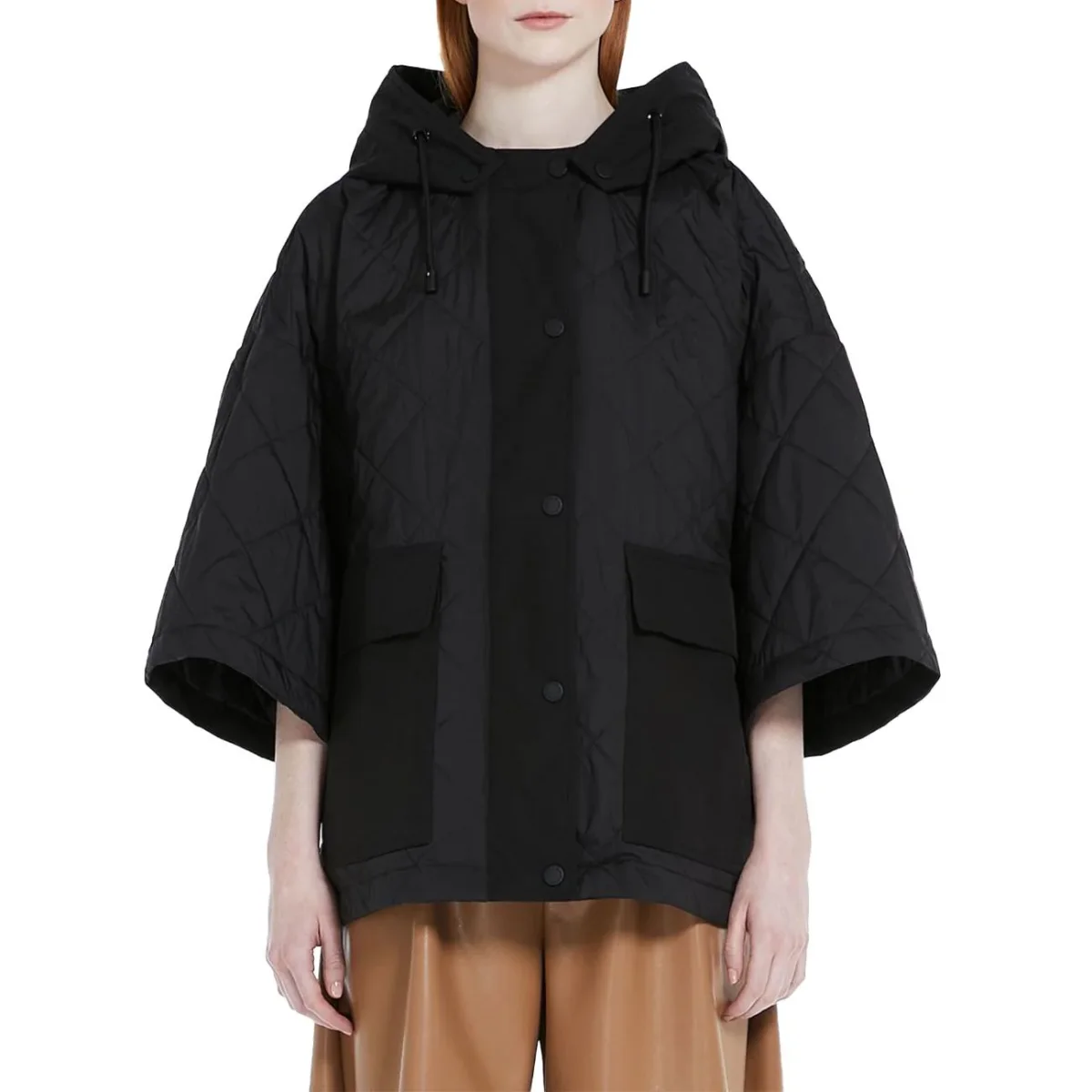 Cappa DONNA – Modello: DISEGNO ROMBO TEQUILA – Colore: NERO Mantella corta imbottita in tessuto tecnico showerproof con motivo trapuntato a rombi, cappuccio con coulisse e tasche a toppa. L’imbottitura interna Luxepad Ultra fine Insulating Technology è progettata per trattenere e ottimizzare il calore corporeo. Rifinito con logo a farfalla sul retro e con una chiusura con bottoni automatici. COMPOSIZIONE: 100% Poliestere