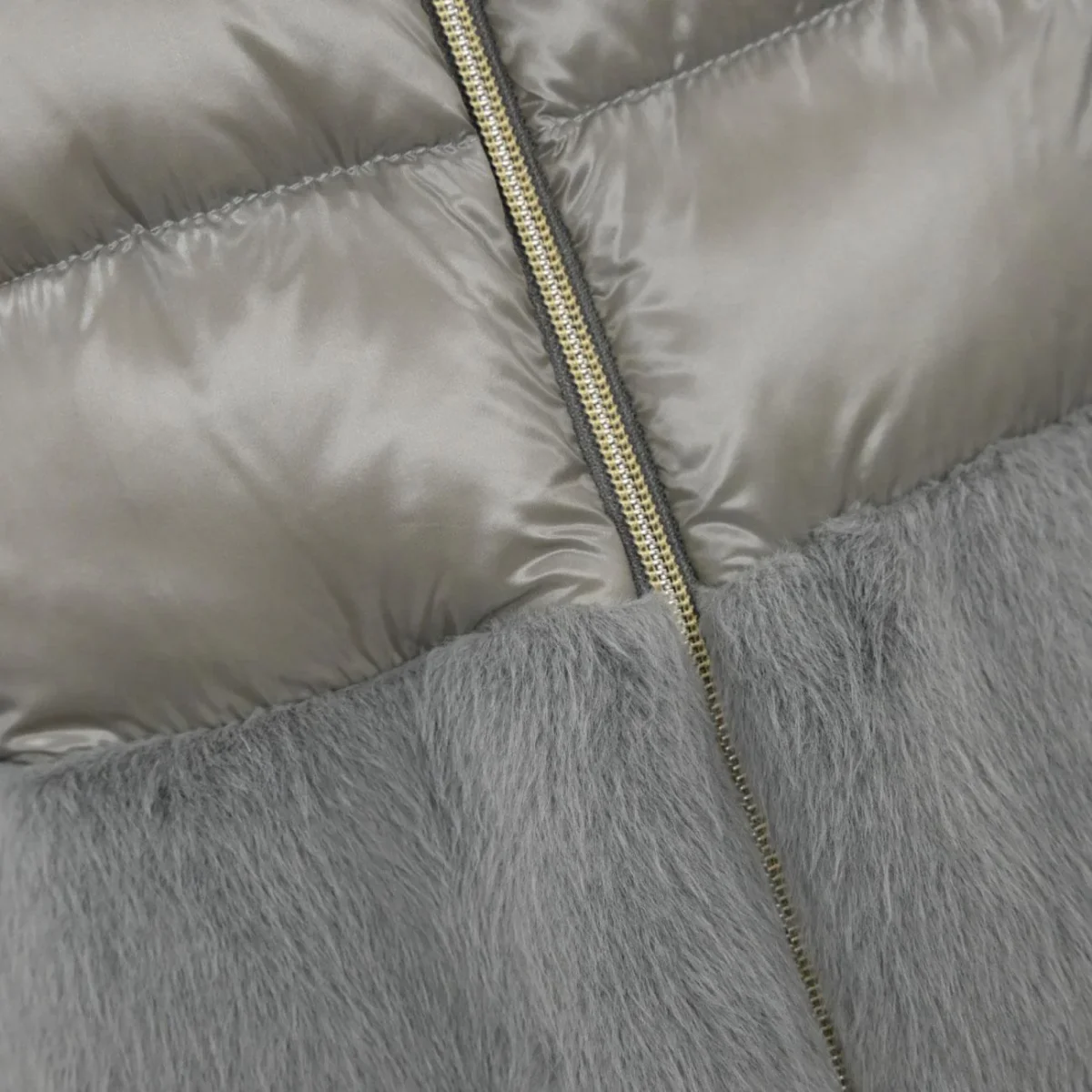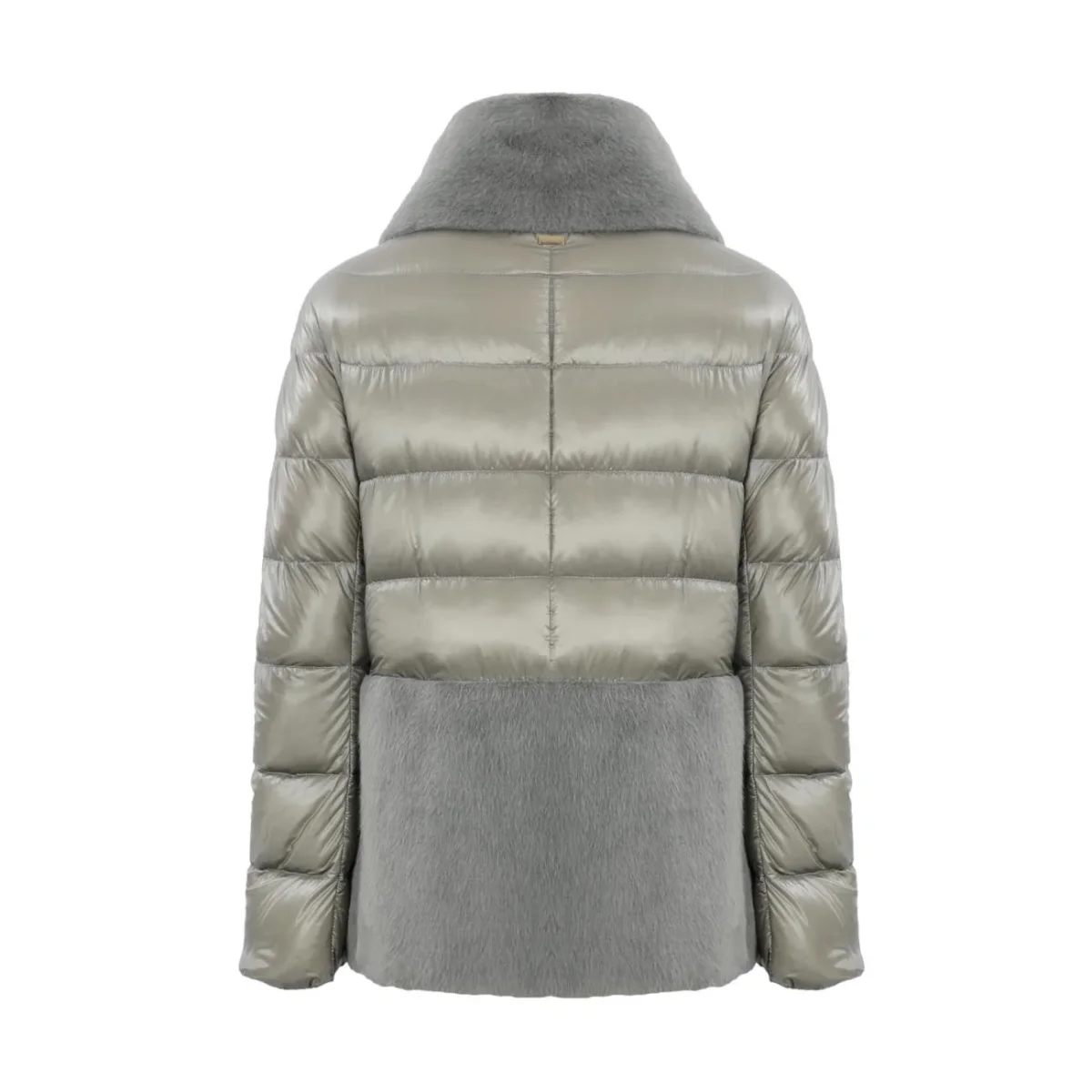 Cappa DONNA – Modello: PI001933D12017Z – Colore: GRIGIO PERLA Cappa realizzata in nylon ultralight e piuma pregiata 90/10 inserita a iniezione. Il capo è impreziosito con il collo e il fondo in pelliccia sintetica effetto castorino. Vestibilità over, chiusura con zip a doppio cursore. Trattamento idrorepellente. COMPOSIZIONE: 100% Poliammide