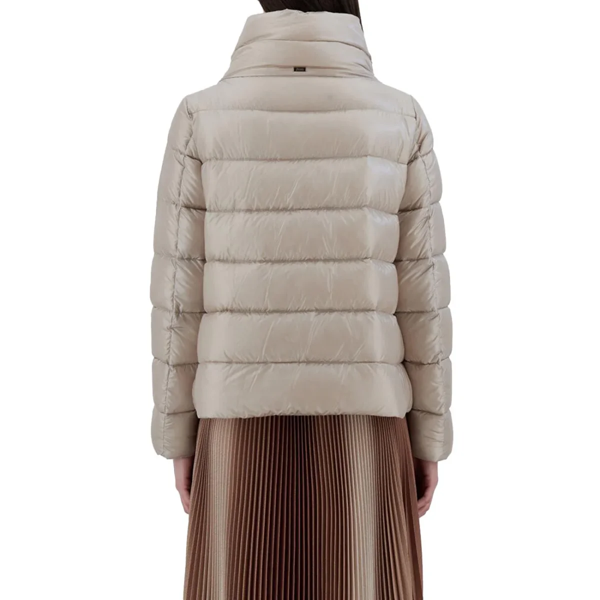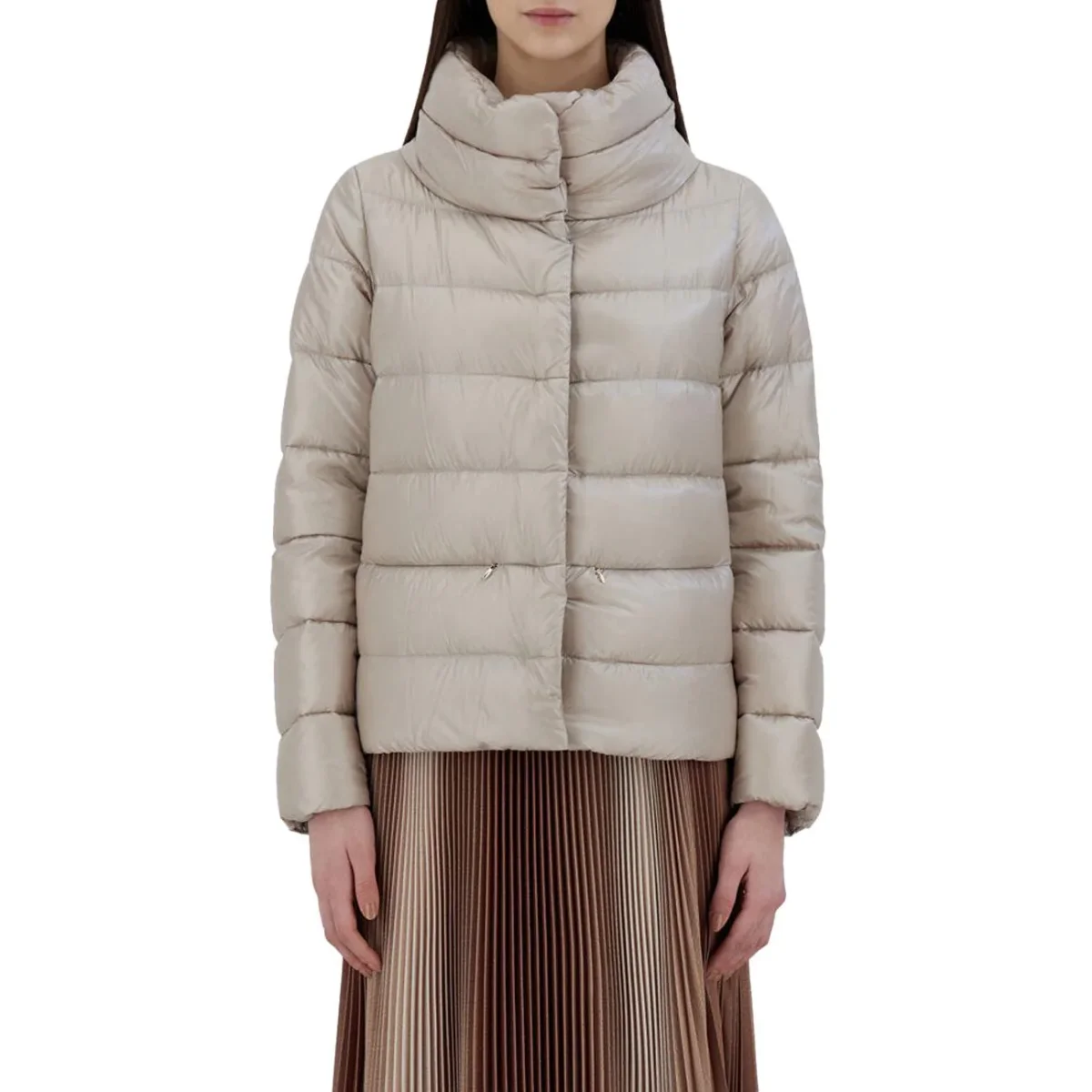 Cappa DONNA – Modello: PI001781D12017Z – Colore: CHANTILLY Cappa realizzata in nylon ultralight giapponese 20 denari e una piuma pregiata 90/10 inserita a iniezione. Vestibilità regolare, collo alto, chiusura coperta con bottoni automatici e trattamento idrorepellente. COMPOSIZIONE: 100% Poliammide