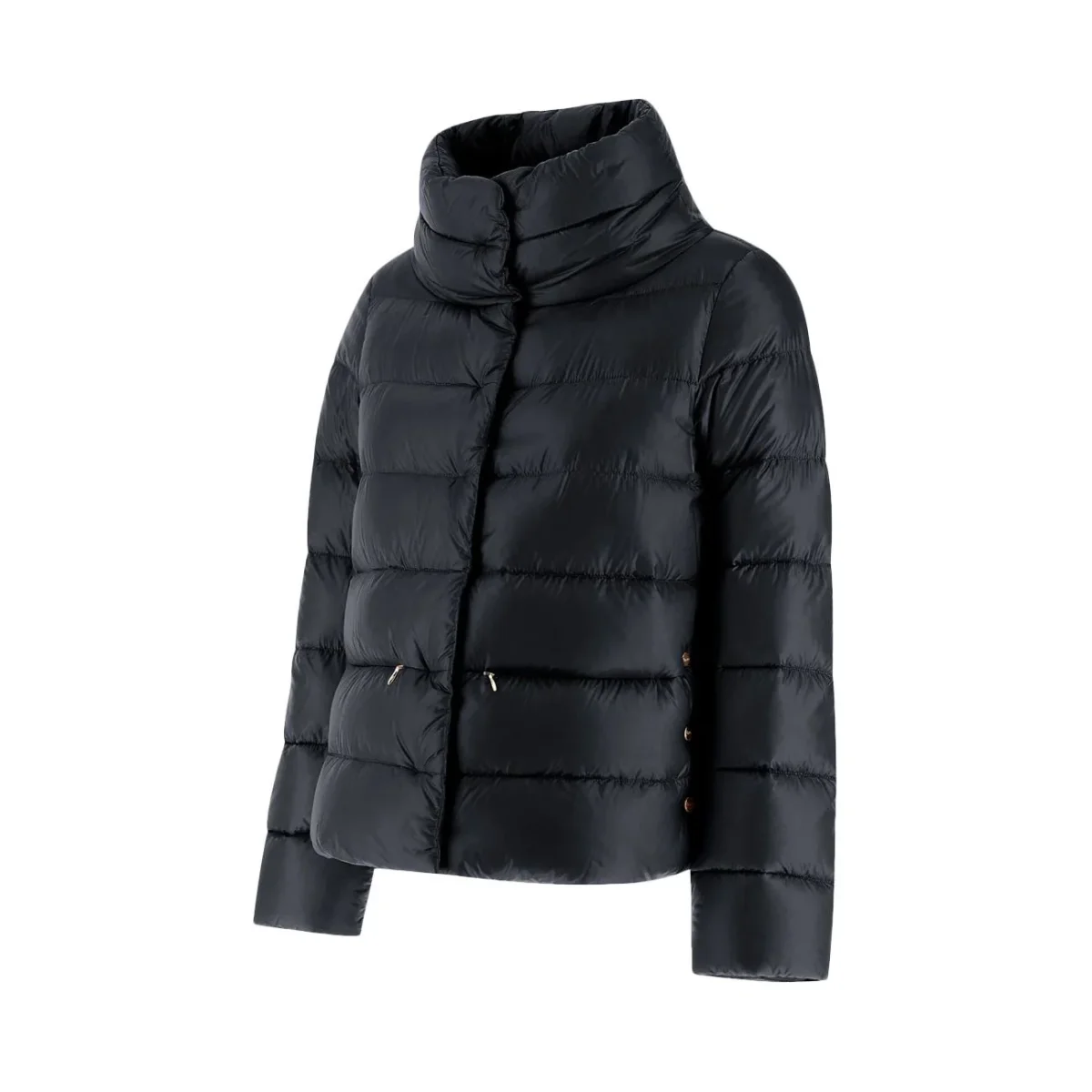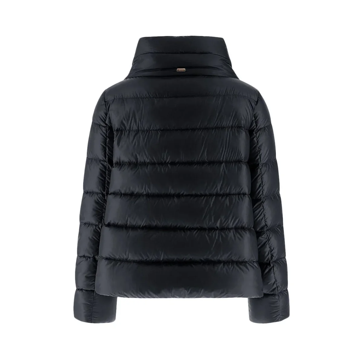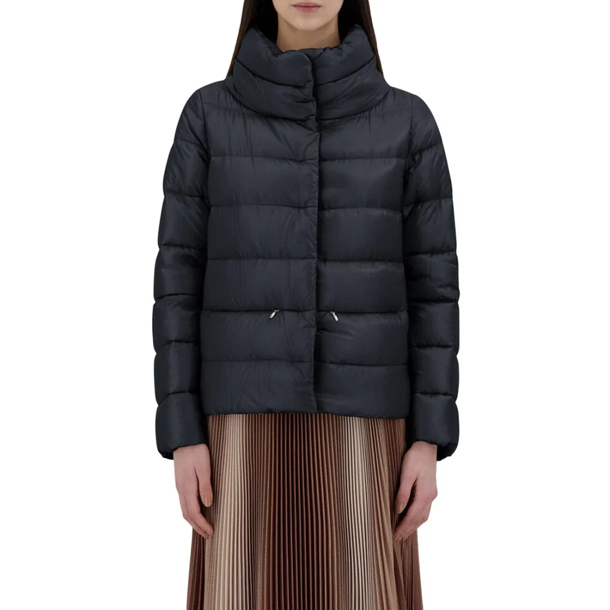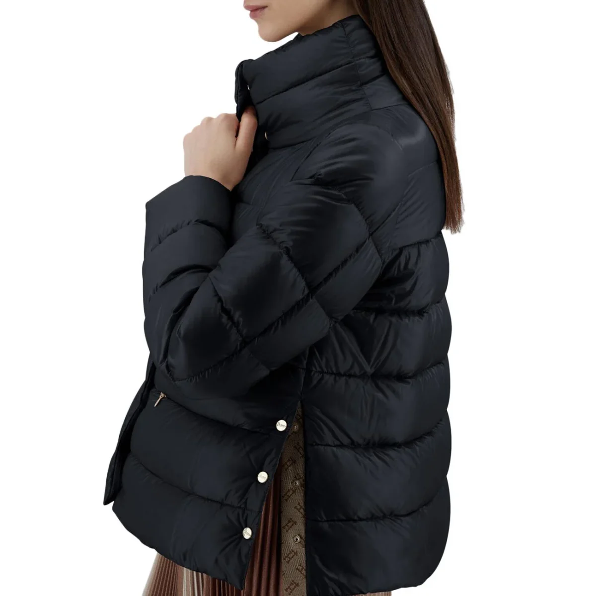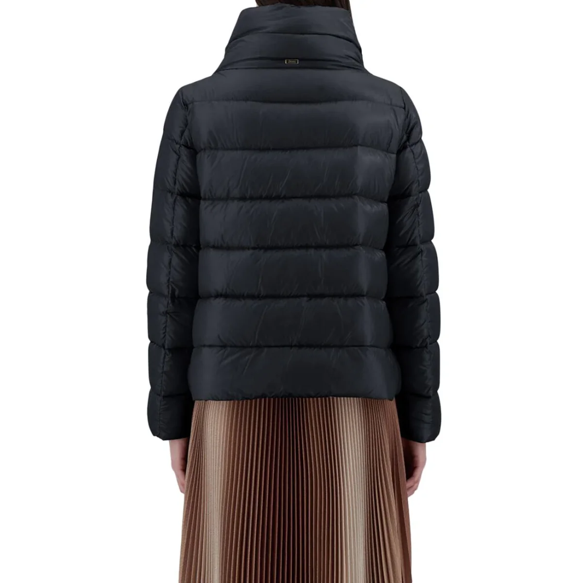 Cappa DONNA – Modello: PI001781D12017Z – Colore: NERO Cappa realizzata in nylon ultralight giapponese 20 denari e una piuma pregiata 90/10 inserita a iniezione. Vestibilità regolare, collo alto, chiusura coperta con bottoni automatici e trattamento idrorepellente. COMPOSIZIONE: 100% Poliammide