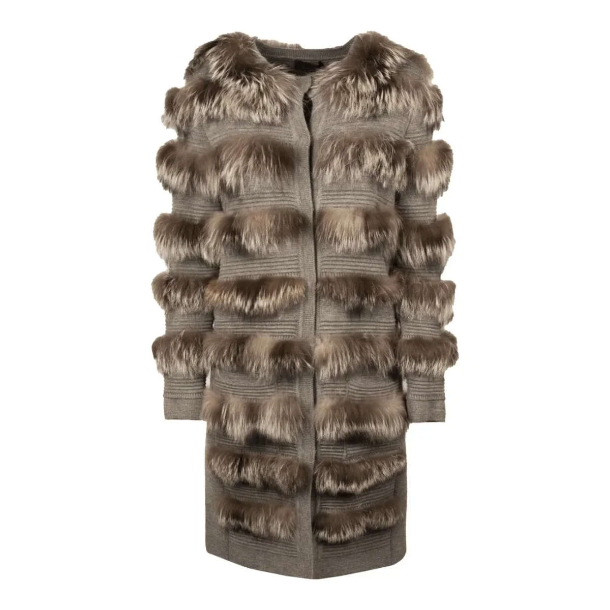 Cappotto DONNA – Modello: JMM90MCOWKNC800 – Colore: GRIGIO Questo cappotto grigio di Jo No Fui unisce la morbidezza della maglia alla raffinatezza della pelliccia, creando un mix materico elegante e contemporaneo. Dal design avvolgente e moderno, è un capo versatile, perfetto per affrontare la stagione fredda con stile e personalità . Composizione: 100% Lana merino, 100% Volpe