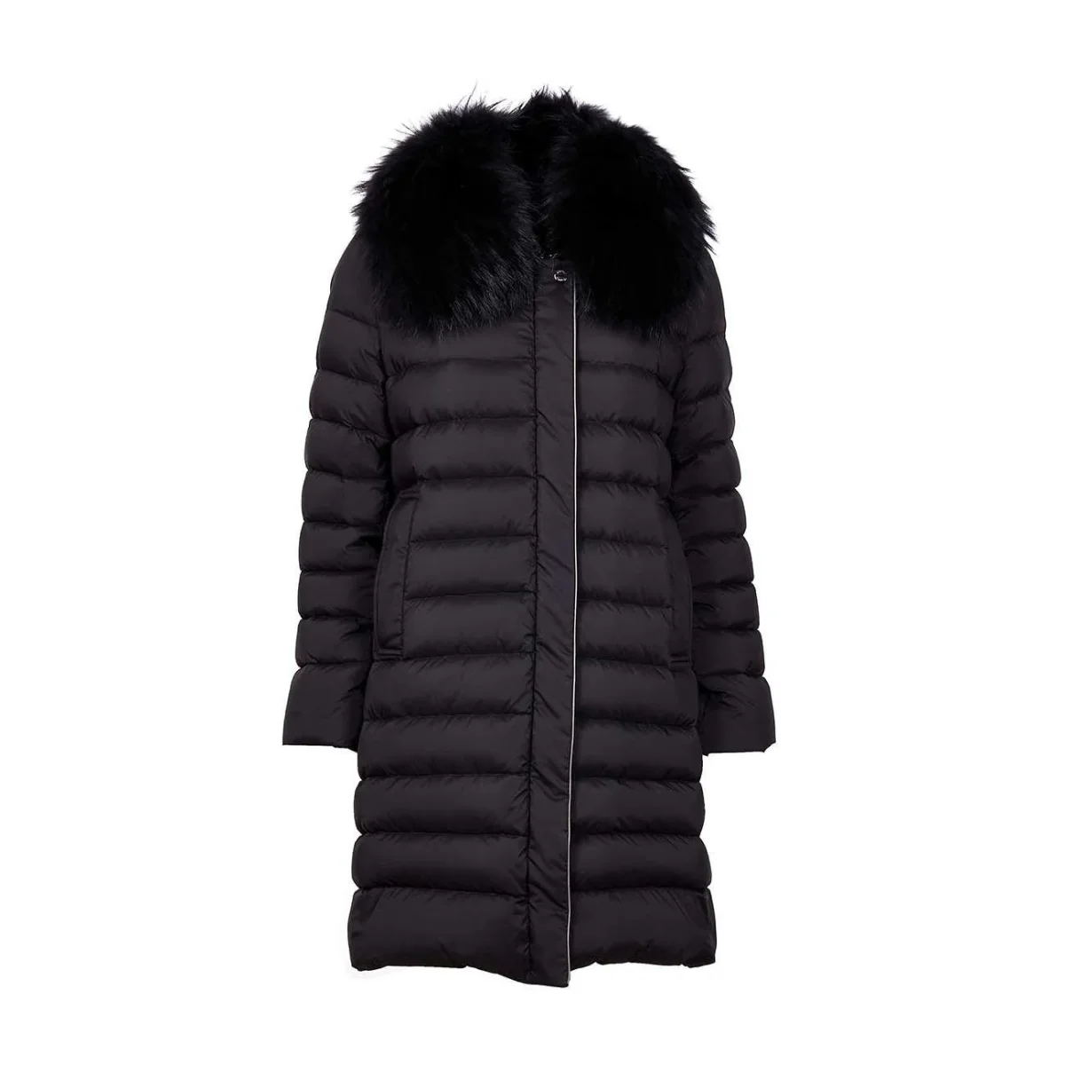 Piumino DONNA – Modello: CINTIA S3 – Colore: NERO Cappotto in piuma con collo staccabile in pelliccia, chiusura zip e bottoni a pressione nascosti. Tasche verticali ai lati. Tessuto setoso in nylon opaco. COMPOSIZIONE: 95% nylon 5% poliueretano Codice produttore: CINTIA-S3