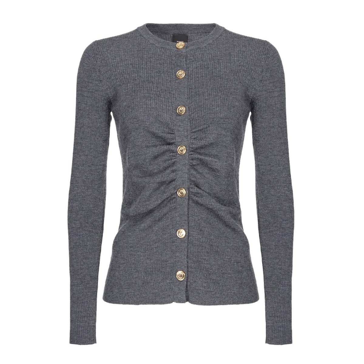 Cardigan DONNA – Modello: EVELIGNESE – Colore: DARK GREY Cardigan dalla linea aderente realizzato in maglia di lana lavorata a costine. Presenta scollo tondo, maniche lunghe e arricciatura lungo la chiusura. Dettaglio chiusura con bottoni metallici personalizzati con logo Love Birds. COMPOSIZIONE: 81% lana, 19% poliammide Codice produttore: 102340/A15S