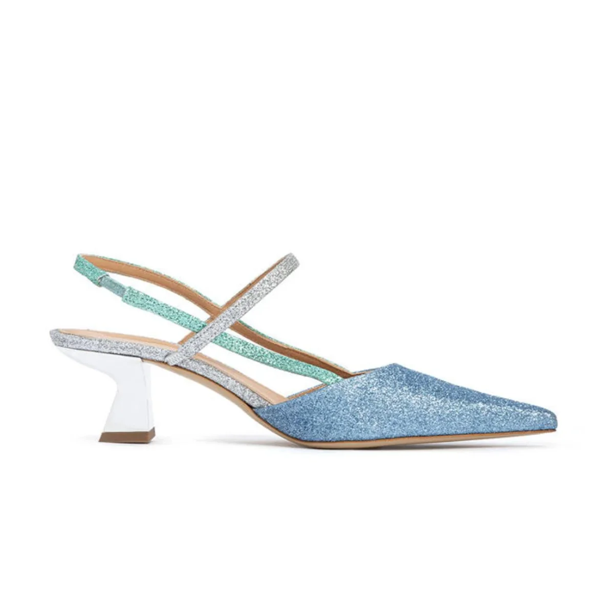 Décolleté DONNA – Modello: AMAI – Colore: AVIO SILVER MINT Décolleté slingback a punta glitterate con tacco 6 come. La scarpa perfetta per rendere luminoso il tuo look! Codice produttore: AMAI