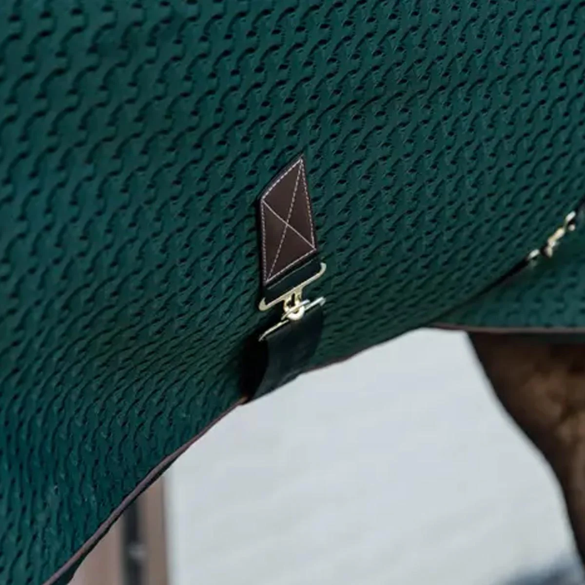 La coperta da box 4D Spacer Cooler Sheet di Kentucky è progettata per offrire il massimo comfort al cavallo, soprattutto dopo il lavoro o durante i periodi più caldi. Realizzata in un innovativo tessuto 4D a struttura nido d’ape, garantisce un’eccellente traspirazione e un’efficace evaporazione del sudore, mantenendo il cavallo asciutto e protetto da sbalzi termici grazie al suo effetto isolante. Il design ergonomico è completato da dettagli funzionali come il morbido rivestimento in pelle sintetica sulla zona del garrese per prevenire sfregamenti, doppia chiusura frontale, due sottopancia incrociati con clip rinforzate in pelle sintetica e cordino per la coda removibile. Elegante e leggera, è perfetta per l’uso quotidiano in scuderia.