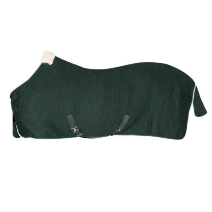 La coperta Mesh Combo Cooler Kentucky è una soluzione versatile per cavalli, ideale per uso in campo, scuderia e trasporto. Realizzata con tessuti leggeri e altamente traspiranti, è perfetta per il raffreddamento e per asciugare rapidamente il cavallo dopo allenamenti o bagni primaverili ed estivi. La parte superiore è realizzata in 3D Spacer, una struttura a nido d’ape che assorbe il sudore e mantiene il cavallo asciutto, mentre la parte inferiore è in tessuto a rete anti-insetti che protegge efficacemente dagli insetti e favorisce la circolazione dell’aria per un effetto rinfrescante graduale. Sagomata anatomicamente per adattarsi perfettamente alla schiena del cavallo, questa coperta include agnellino sintetico al garrese per maggiore comfort e cinghie sottopancia rimovibili per una vestibilità personalizzata. Il bordo marrone e il logo Kentucky in pelle vegana completano il design elegante e funzionale.