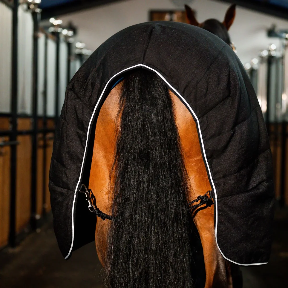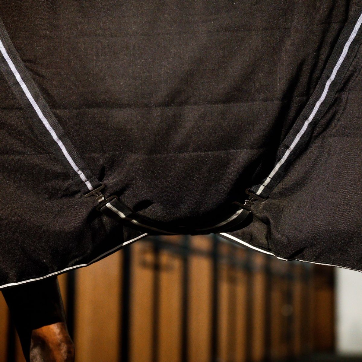 Coperta da box 100gr con tessuto esterno traspirante in poliestere Ripstop 1000D resistente e durevole, e con imbottitura in fibra termolegata da 100 g. La coperta è inoltre dotata di una fodera in microfibra morbida, traspirante e confortevole che mantiene ulteriormente il calore. Il design dal taglio classico con doppia chiusura anteriore, include cinghie incrociate e cordino regolabile per una vestibilità sicura e regolabile.