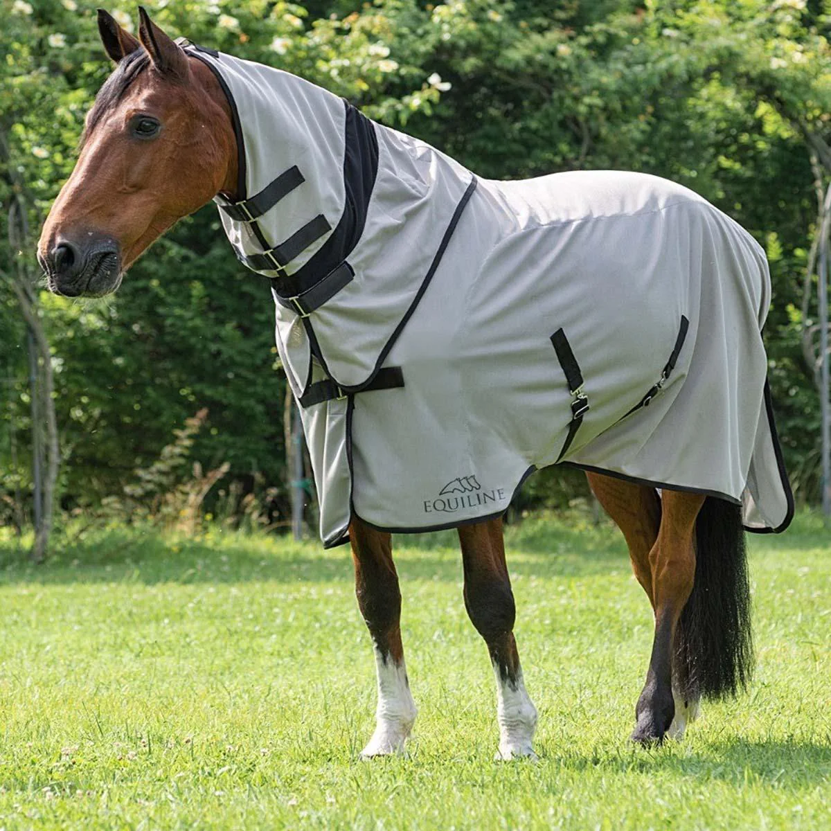 La coperta Eczema Rug Breakaway firmata Kentucky è la soluzione ideale per i cavalli con pelle sensibile, soggetti a prurito o eczema. Realizzata in tessuto 900 denari altamente resistente, elastico e traspirante, assicura massima protezione e comfort anche durante i mesi più caldi. Dotata di collo integrato fino alle orecchie, chiusura con 5 strap in velcro e ganci, ampio copriventre con tre cinghie dritte e lembo della coda extra lungo con elastico, questa coperta è studiata per proteggere efficacemente il cavallo dagli insetti, prevenire lo sfregamento e garantire asciugatura rapida. Il colore chiaro riflette i raggi solari evitando il surriscaldamento.