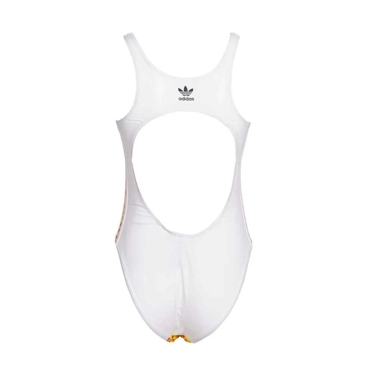 Costume intero DONNA – Modello: BODY GRAPHIC – Colore: BIANCO MULTICOLOR Costume intero bianco, modello olimpionico, con stampa multicolor Fumetto by Fiorucci. 3-stripes laterali bianche e logo Trefoil stampato in nero sul retro. Modello sgambato. COMPOSIZIONE 100% poliestere Codice produttore: FL4150