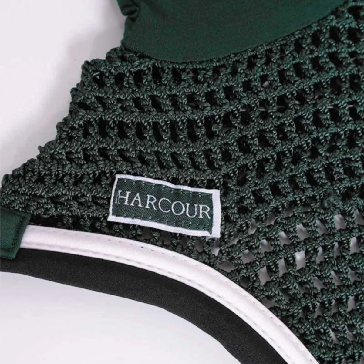 Cuffietta antimosche in maglia lavorata a mano con cotone sulle orecchie per un maggiore comfort.Il profilo piatto lungo il bordo e il logo Harcour completano il design.