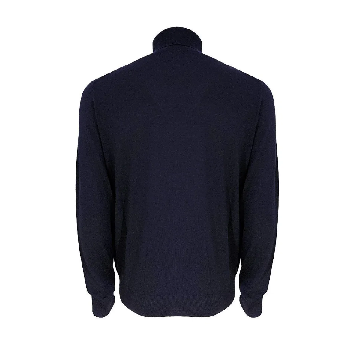 Pull blu navy in lana merino con collo alto e logo Cavallino ricamato tono su tono lato cuore. Taglia e Fit: Il capo veste slim, si consiglia comunque di acquistare la propria taglia.