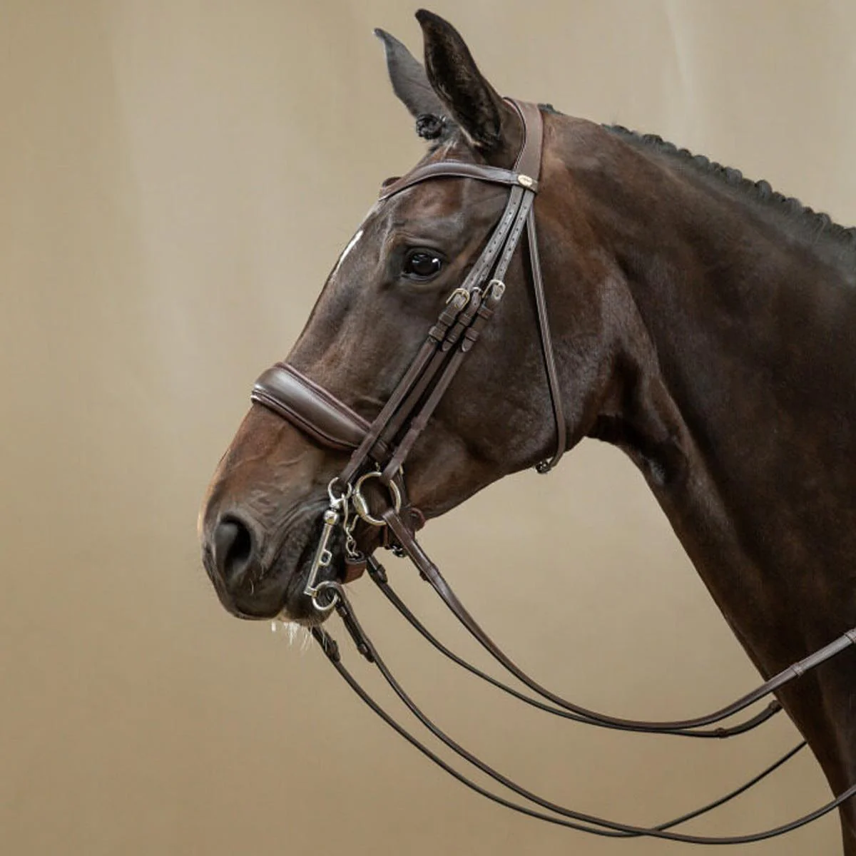 DY’ON BRIGLIA DA DRESSAGE IN CUOIO WORKING COLLECTION firmato DY’ON, pensato per l’equitazione di qualità e rifinito con cura artigianale. La variante in marrone valorizza il profilo dell’insieme con un’eleganza discreta. Appartiene alla Working Collection, una linea robusta e affidabile pensata per l’allenamento quotidiano, ideale quando servono resistenza e praticità senza rinunciare al comfort del cavallo. Pensato per redini, si integra facilmente nel set di finimenti offrendo un equilibrio naturale tra controllo e sensibilità .