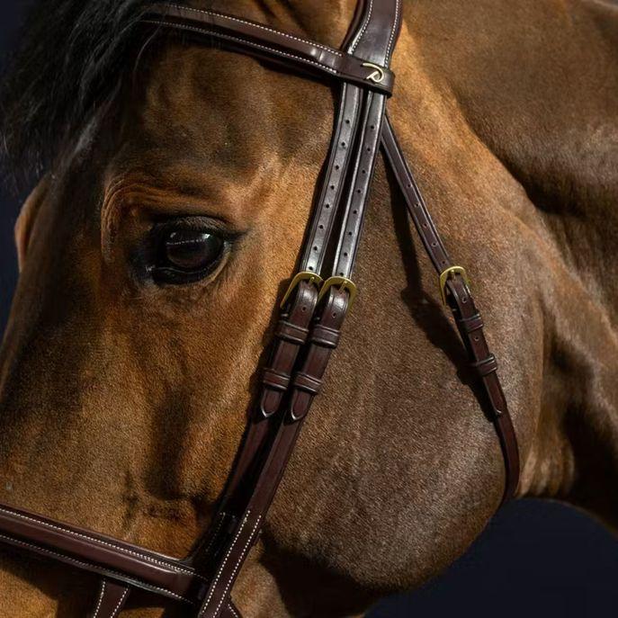 DY’ON DOUBLE NOSEBAND BRIDLE D COLLECTION firmato DY’ON, pensato per l’equitazione di qualità e rifinito con cura artigianale. La variante in marrone valorizza il profilo dell’insieme con un’eleganza discreta. Fa parte della D Collection, dove l’estetica classica incontra la funzionalità moderna, per un look raffinato e sempre attuale. Pensato per testiere, si integra facilmente nel set di finimenti offrendo un equilibrio naturale tra controllo e sensibilità .